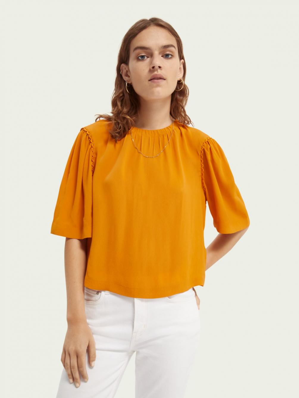 Blouses & overhemden | Boxy fit top met geschulpte details Sunset Orange – Scotch & Soda Dames