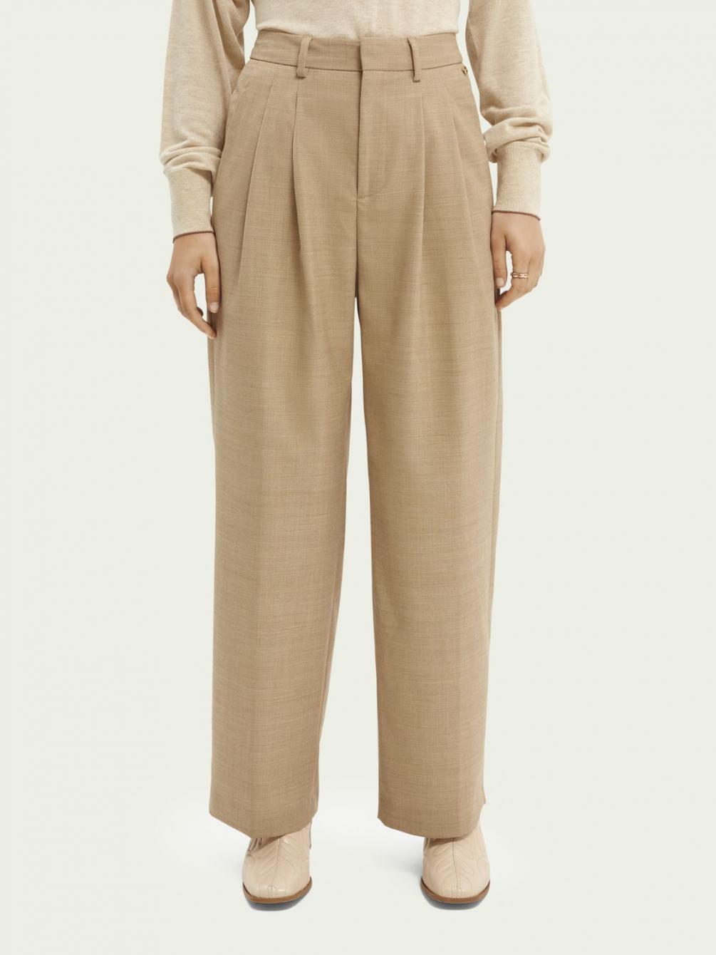 Broeken | Broek van een wolmix met wijde pijpen Sand Melange – Scotch & Soda Dames