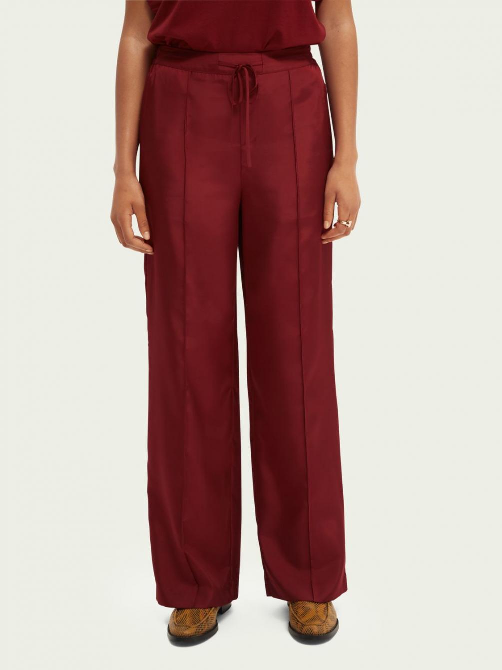 Combi sets | Mid rise broek met wijde pijpen van twill Ruby Red – Scotch & Soda Dames