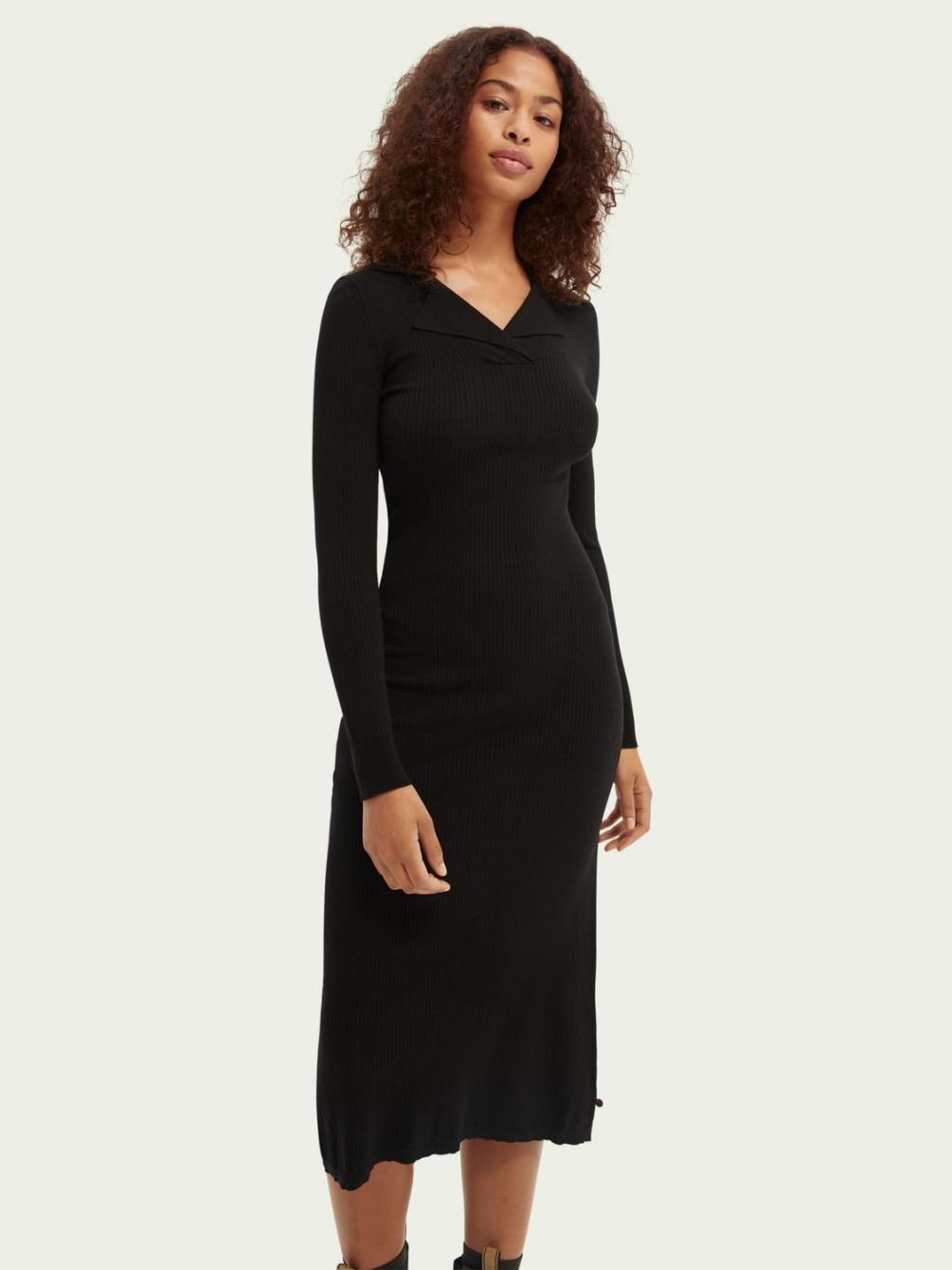 Jurken & jumpsuits | Ribgebreide midi-jurk Black – Scotch & Soda Dames