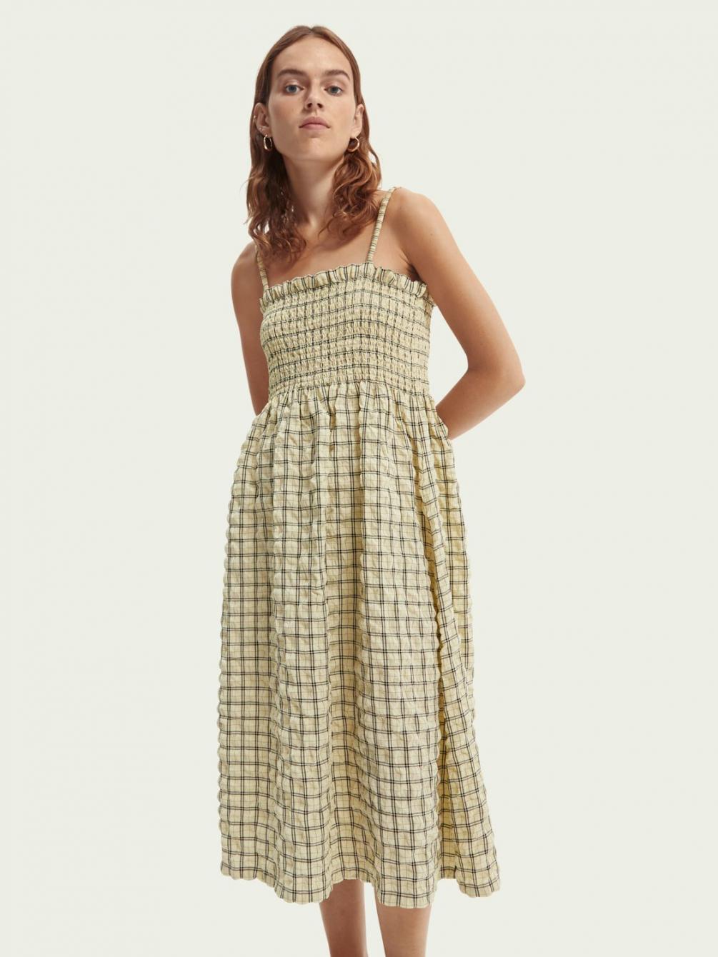 Jurken & jumpsuits | Geruite en gesmokte midi-jurk Combo X – Scotch & Soda Dames