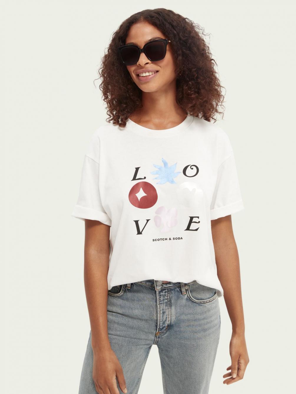 Tops & T-shirts | Loose fit graphic T-shirt van biologisch katoen Off White – Scotch & Soda Dames