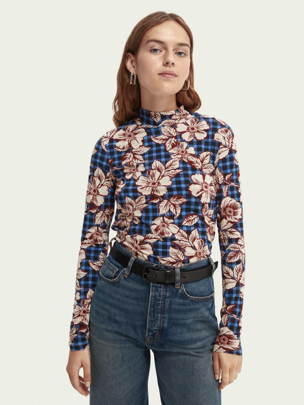 Tops & T-shirts | Slim-fit T-shirt met hoge hals en print Combo G – Scotch & Soda Dames
