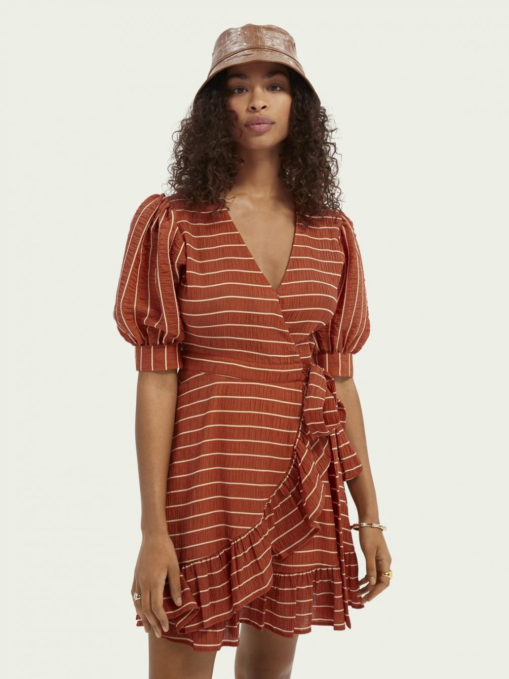 Jurken & jumpsuits | Gestreepte wikkeljurk Rust – Scotch & Soda Dames