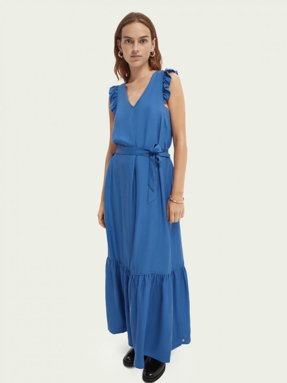 Jurken & jumpsuits | Maxi-jurk met V-hals en open rug Quilt Blue – Scotch & Soda Dames