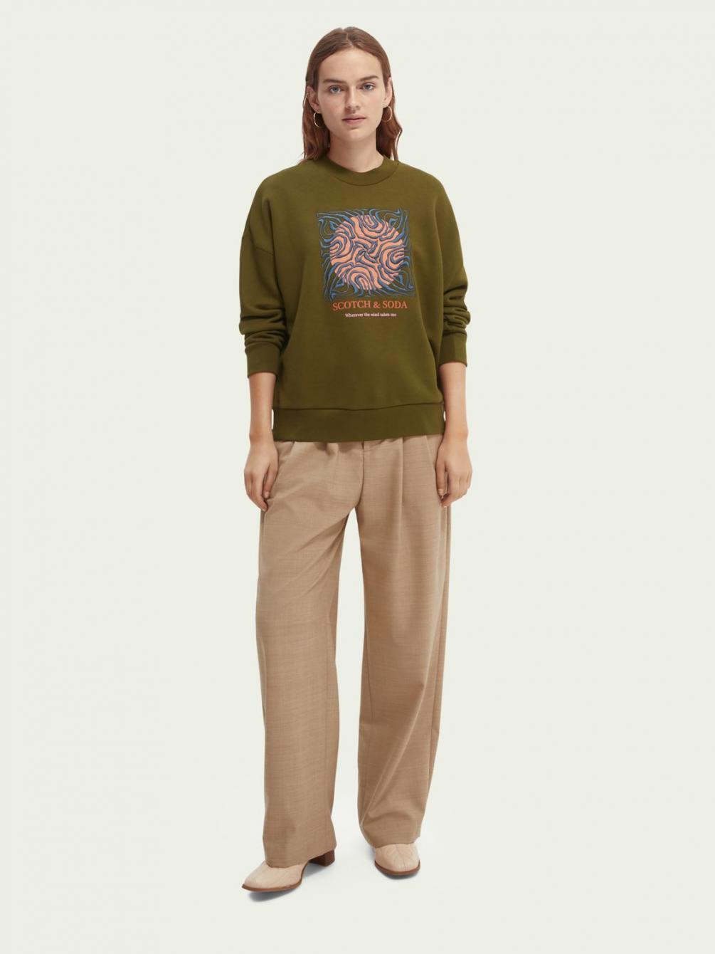 Sweaters | Crewneck oversized graphic sweatshirt Military – Scotch & Soda Dames