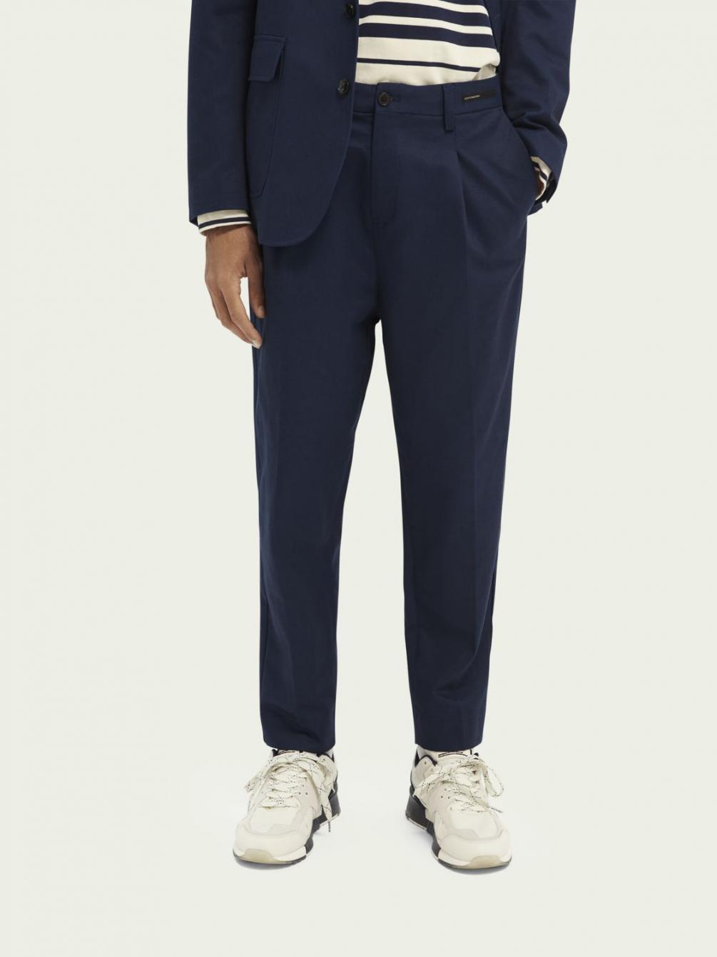 Broeken | Geplooide loose tapered fit chino Navy – Scotch & Soda Heren