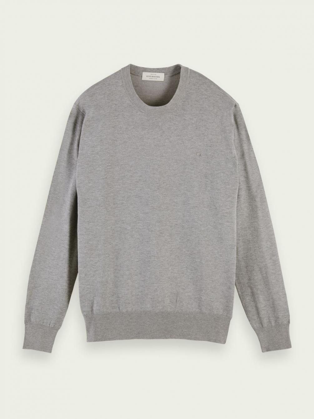 Essentials | Zachte trui met ronde hals Grey Melange – Scotch & Soda Heren