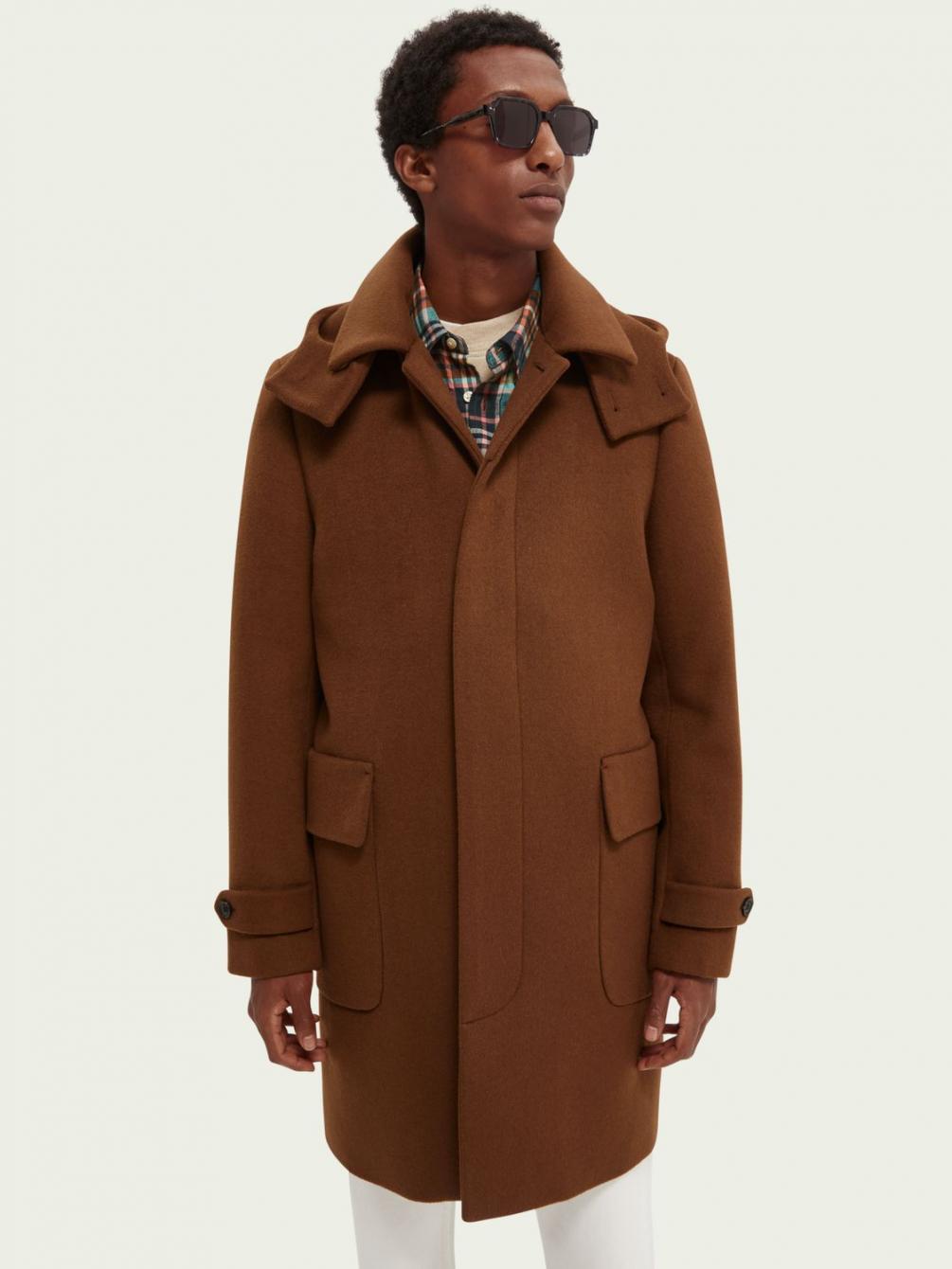 Jassen & jacks | Lange jas met capuchon van een wolmix Aviator Brown – Scotch & Soda Heren