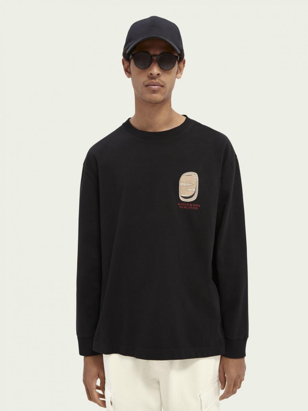 T-shirts & polo’s | T-shirt met lange mouwen en grafische print Black – Scotch & Soda Heren
