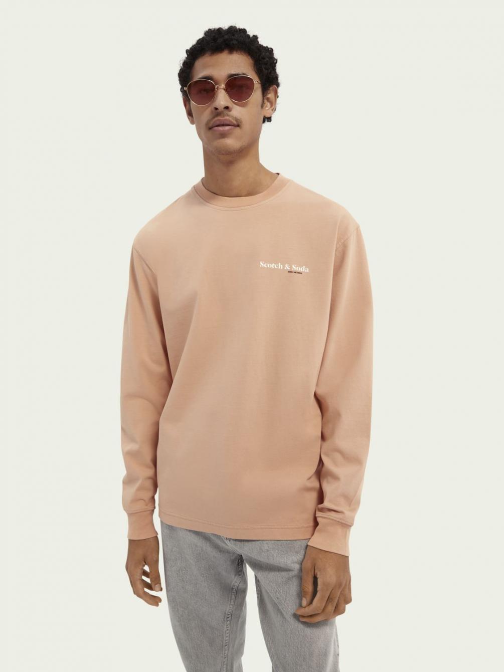 T-shirts & polo’s | T-shirt met lange mouwen en print van biologisch katoen Pink Horizon – Scotch & Soda Heren