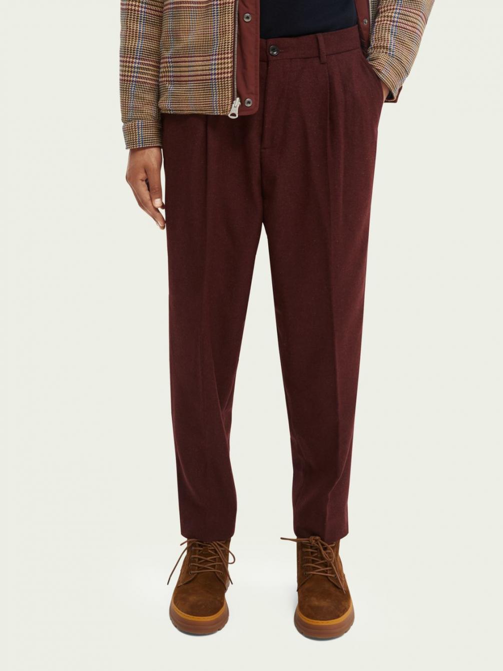 Broeken | Geplooide loose tapered fit chino Bordeaux Border Melange – Scotch & Soda Heren