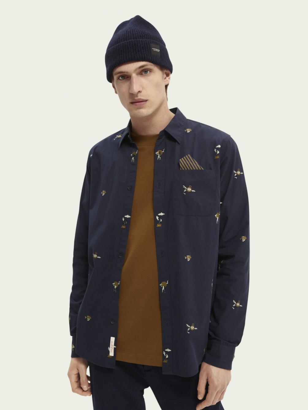 Overhemden | Fil-coupé poplin overhemd met vaste pochet Combo B – Scotch & Soda Heren