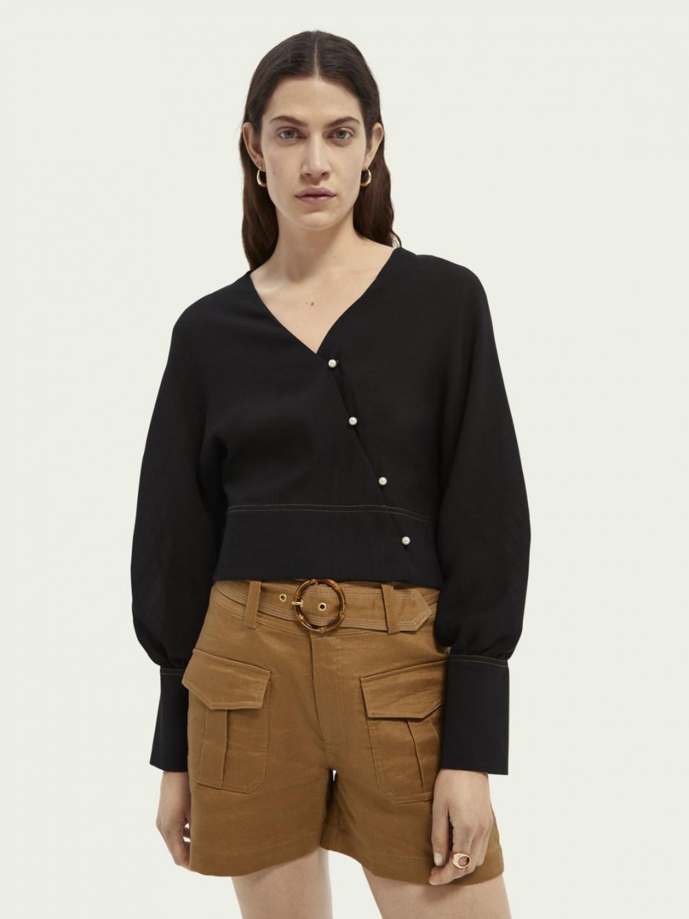 Blouses & overhemden | Wikkeltop met parelknopen Black – Scotch & Soda Dames