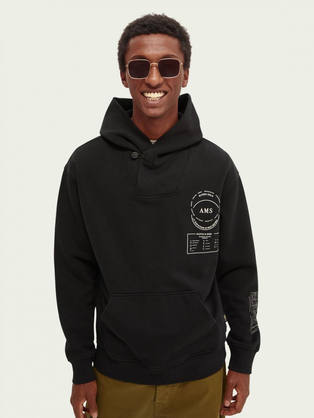 Sweaters | Relaxed fit hoodie met print Black – Scotch & Soda Heren