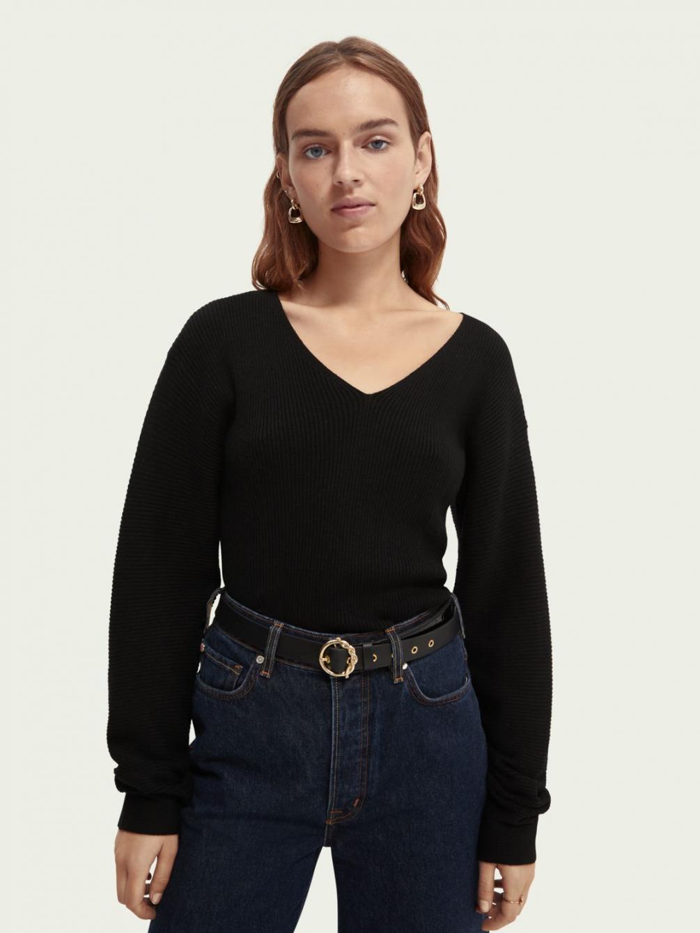 Truien & vesten | Geribbelde trui met V-hals Black – Scotch & Soda Dames