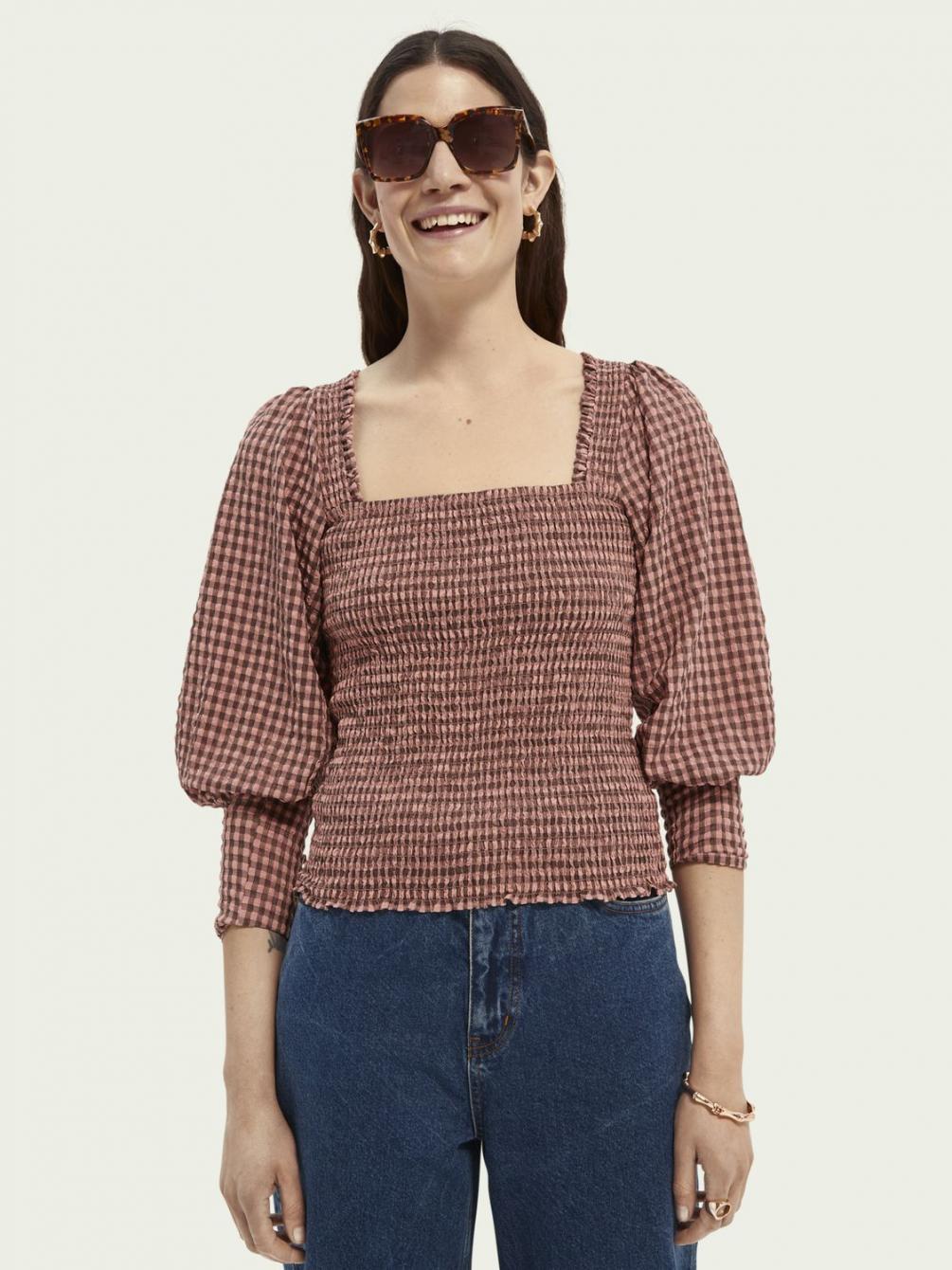 Tops & T-shirts | Seersucker top met gesmokte details en vierkante hals Combo N – Scotch & Soda Dames