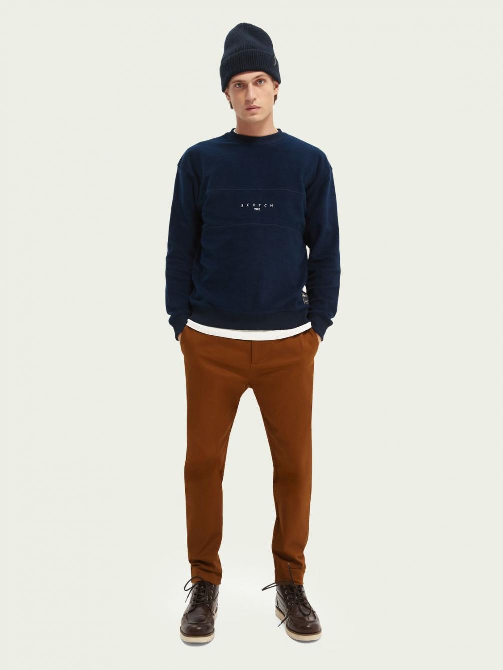 Sweaters | Cut and sew geborstelde felpa sweater Denim Blue – Scotch & Soda Heren