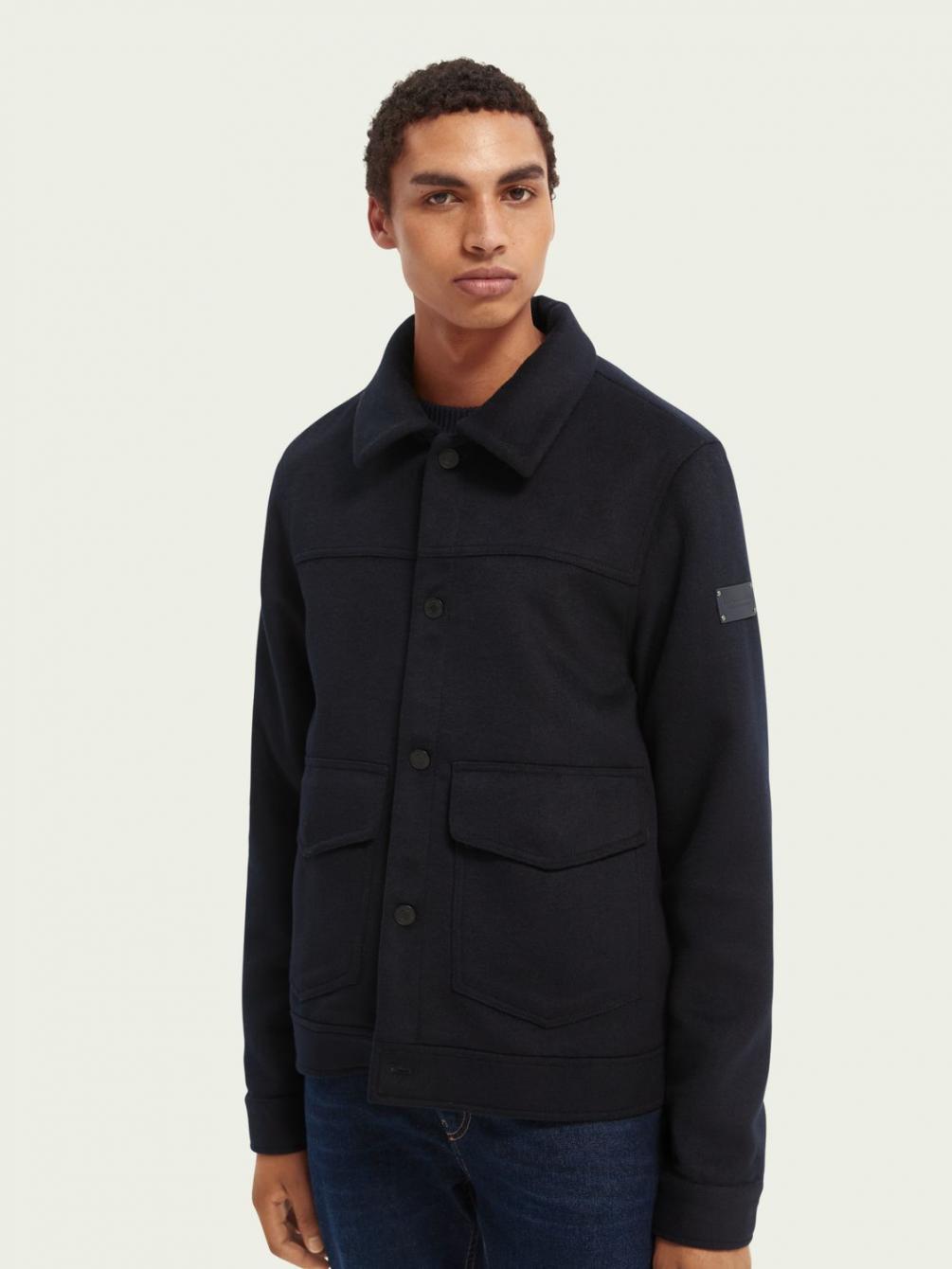 Jassen & jacks | Truckerjack van een wolmix met sherpa Night – Scotch & Soda Heren