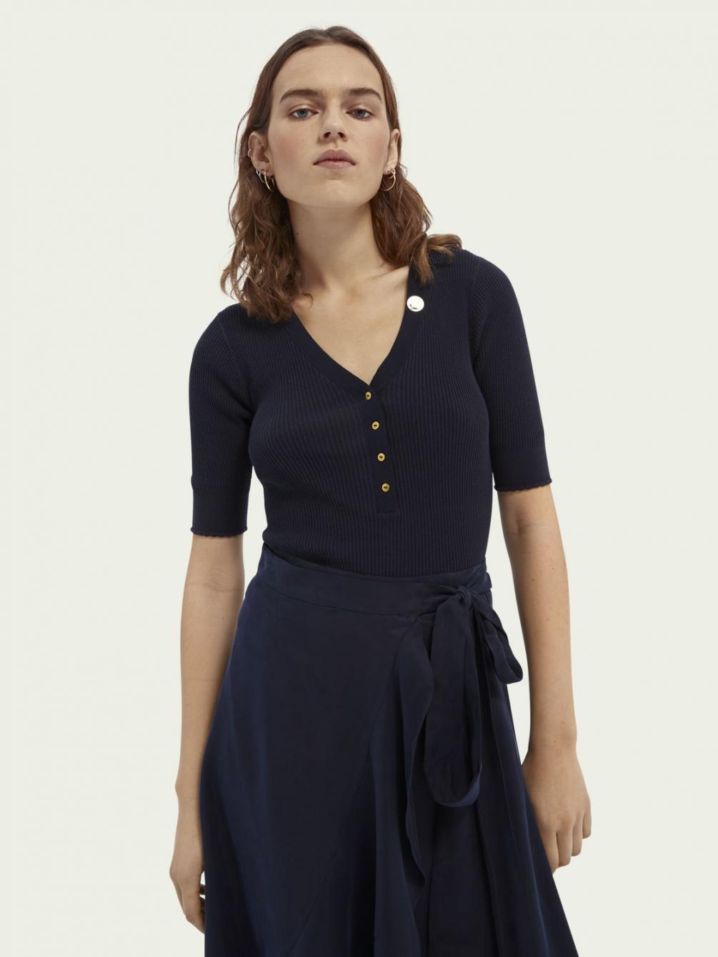 Truien & vesten | Geribbelde top met korte mouwen Night – Scotch & Soda Dames