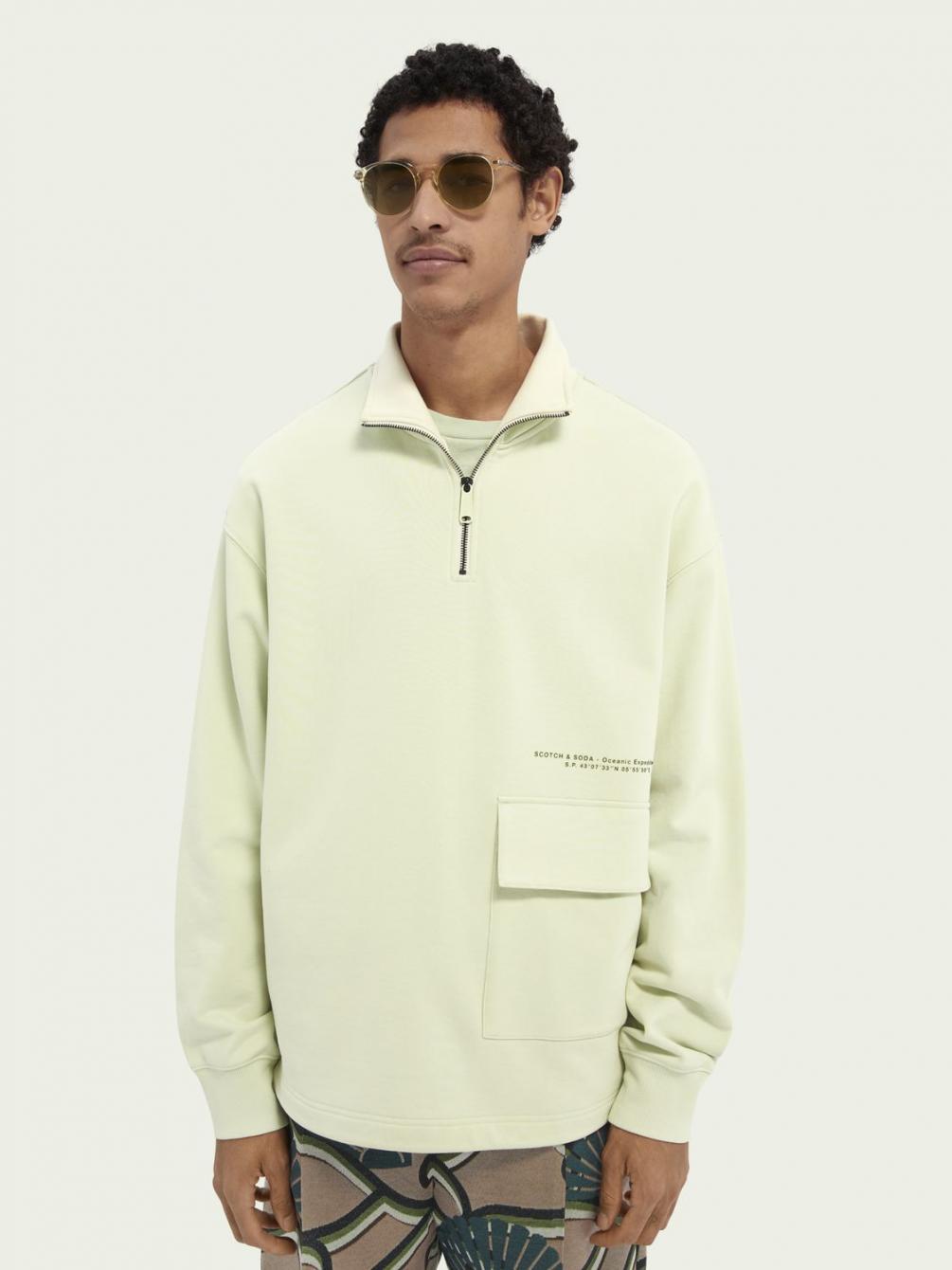 Sweaters | Katoenen felpa sweater met rits Seafoam – Scotch & Soda Heren