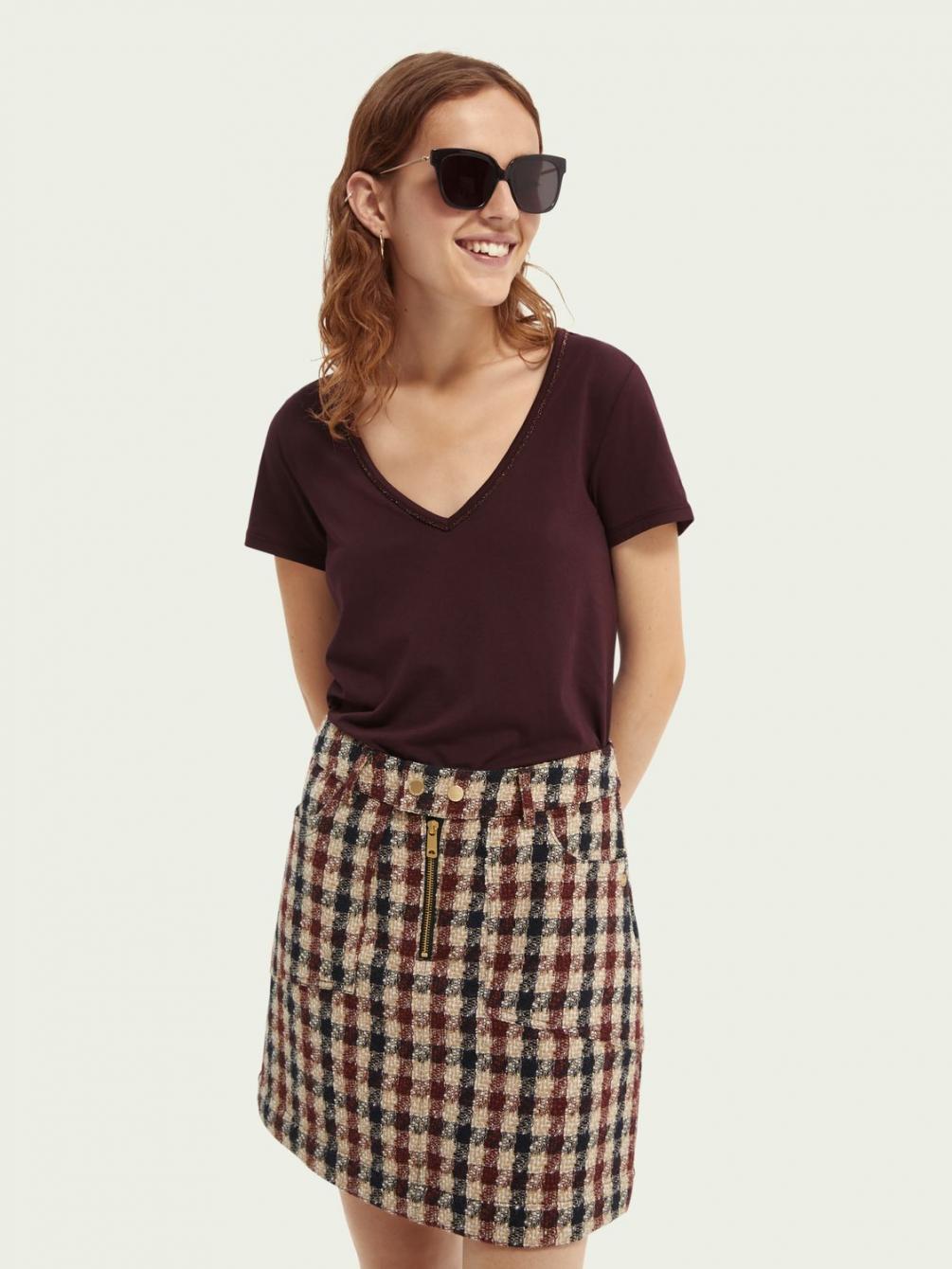 Tops & T-shirts | T-shirt met V-hals Wine – Scotch & Soda Dames