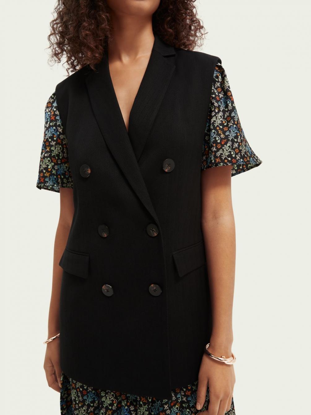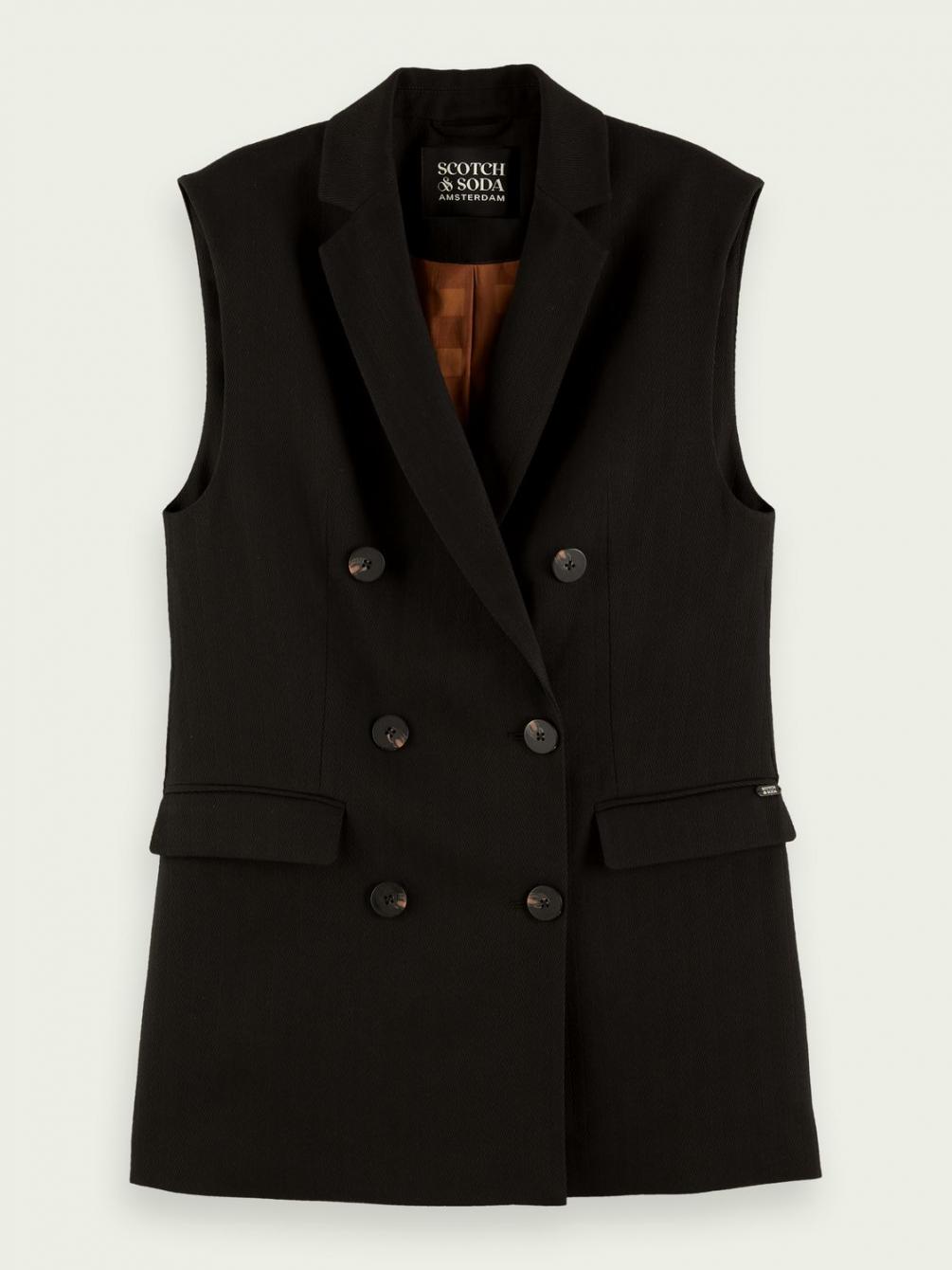 Ons oversized double-breasted gilet geeft je outfit een hoogwaardige uitstraling. Door de klepzakken en knoopsluiting doet het denken aan een blazer. Dankzij het mouwloze ontwerp kun je het overal overheen dragen om je gelaagde looks te accentueren.