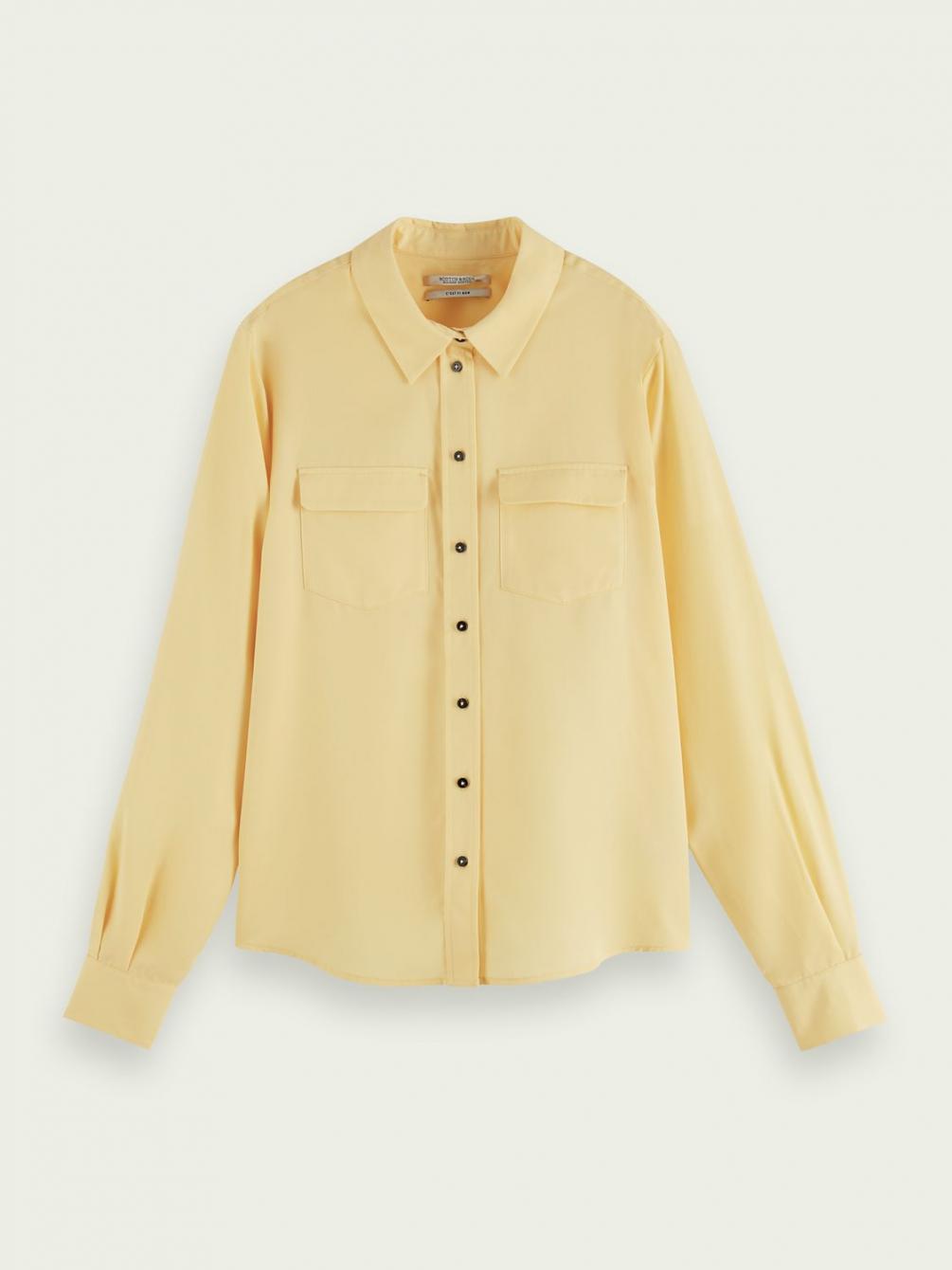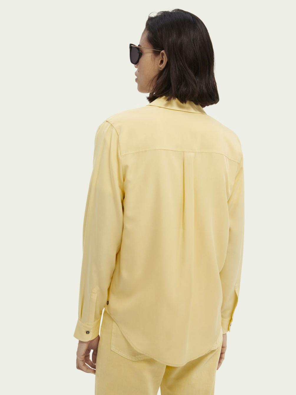 Haal het zonnetje in je garderobe met onze felgele blouse. Dit makkelijk te combineren item is gemaakt van TENCEL™ met een klassieke kraag en knoopsluiting.