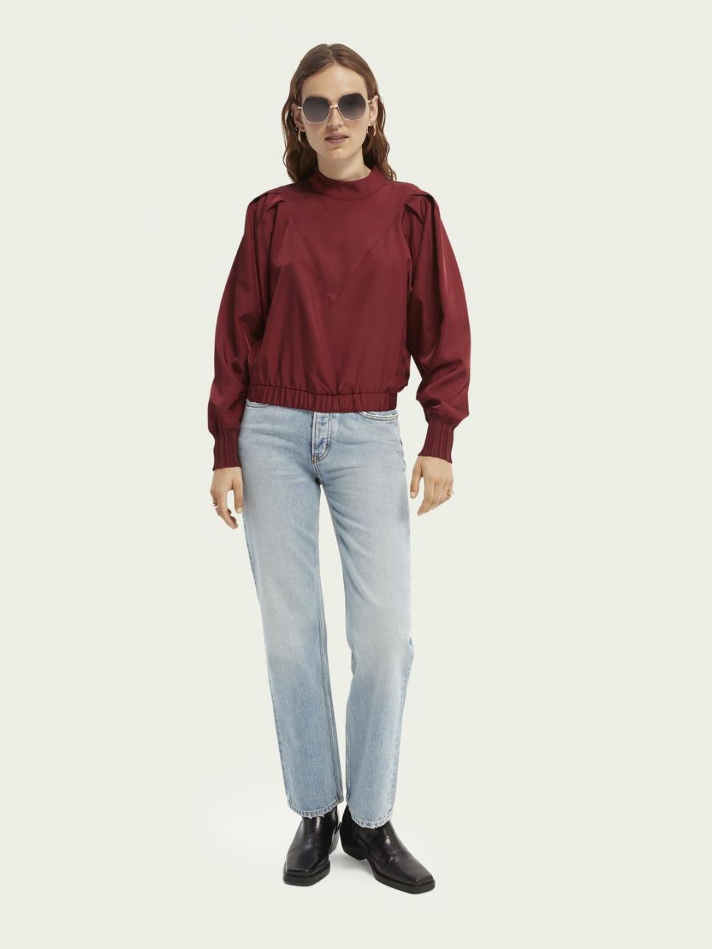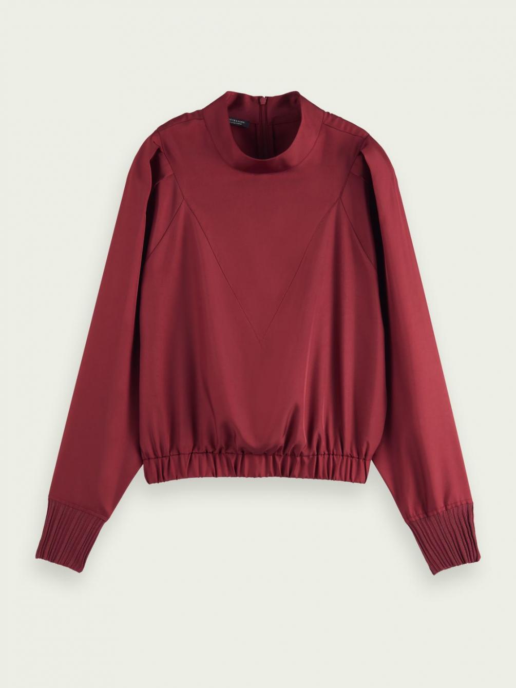 Blouses & overhemden | Geplooide geribbelde top met manchetten Ruby Red – Scotch & Soda Dames