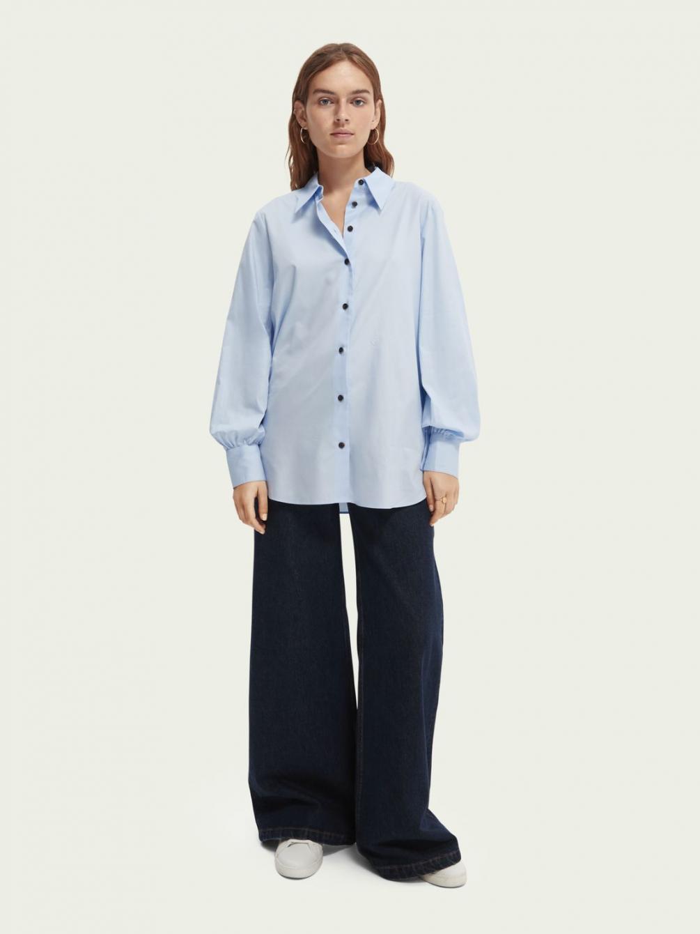 Blouses & overhemden | Oversized blouse met logo Sky Blue – Scotch & Soda Dames