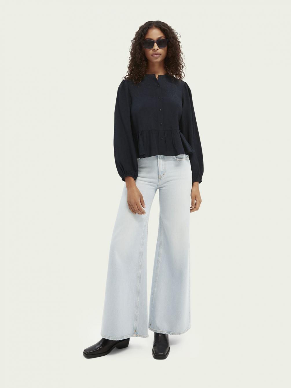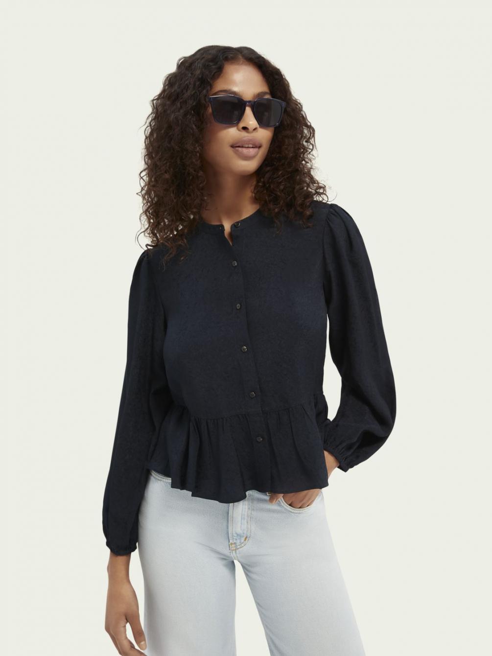 Deze top met ballonmouwen en een peplumdetail aan de zoom is makkelijk te dragen en nog makkelijker te combineren.