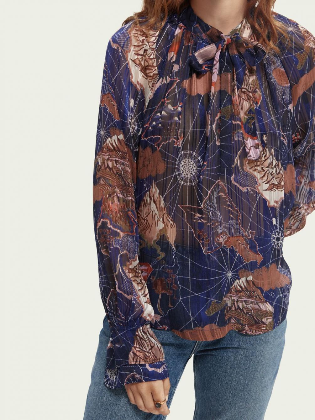 Blouses & overhemden | Transparante top met print en ruches Combo G – Scotch & Soda Dames