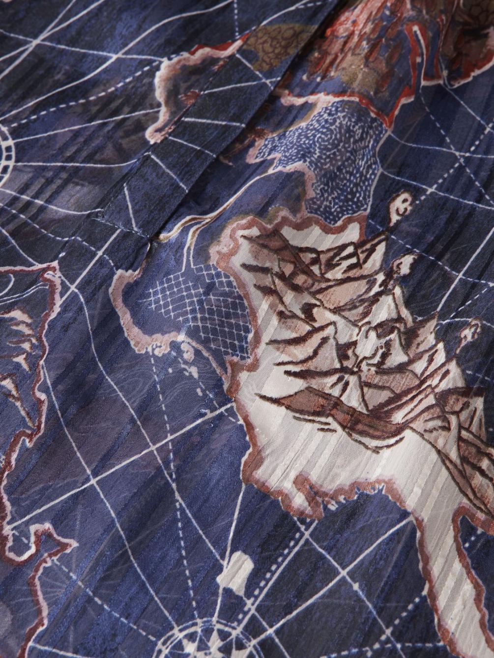 Een transparant materiaal met print en ruches … deze top heeft het echt allemaal. Combineren met een zwarte rok of broek voor een stijlvolle look.