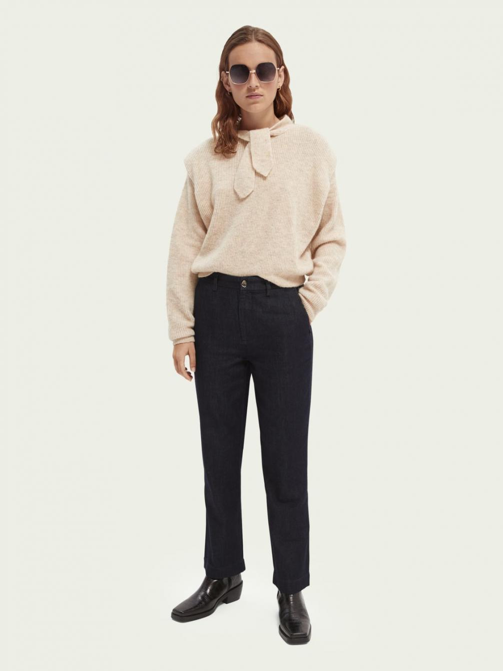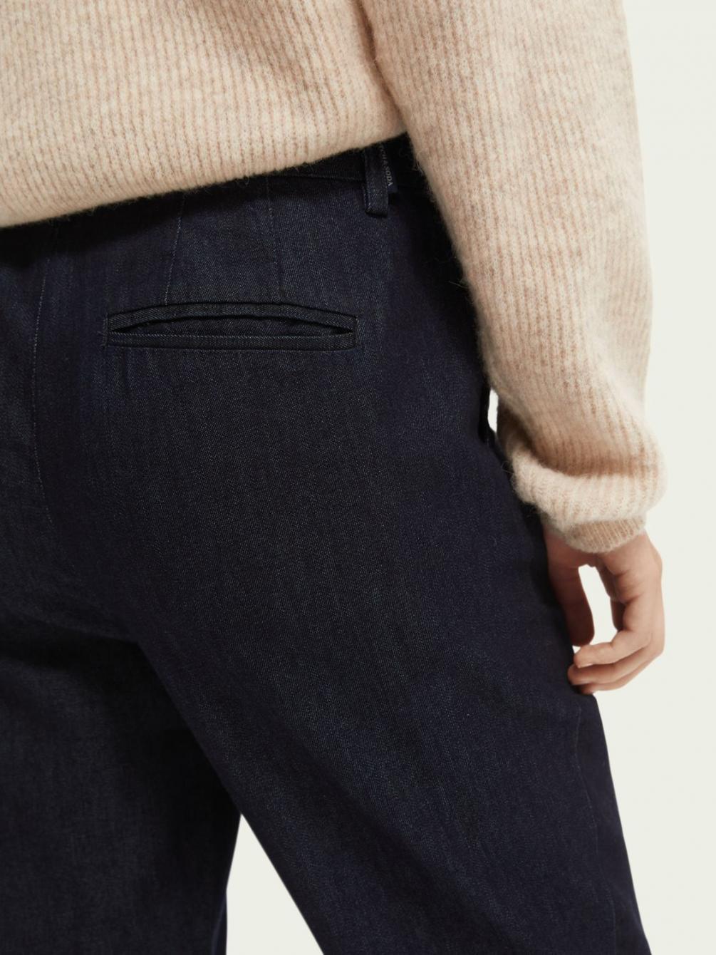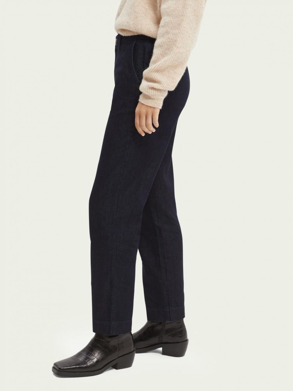 Geef je alledaagse outfit een beetje flair met onze Abott chino. Hij ziet er keurig netjes uit, maar lichtgewicht denim en de clean cut stijl geven er ook een verrassende draai aan. Zakelijk of casual, je kunt er alle kanten mee op.