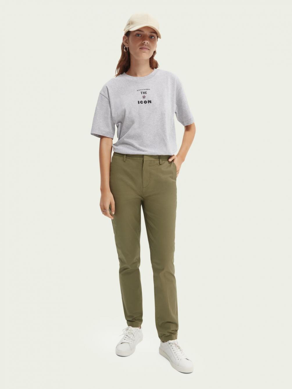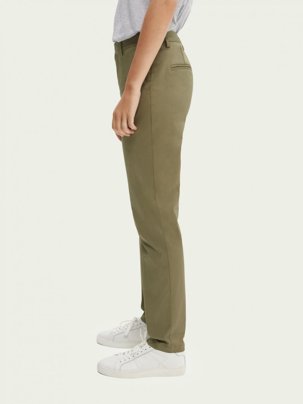 Broeken | Bell chino van gemerceriseerd biologisch katoen Army – Scotch & Soda Dames