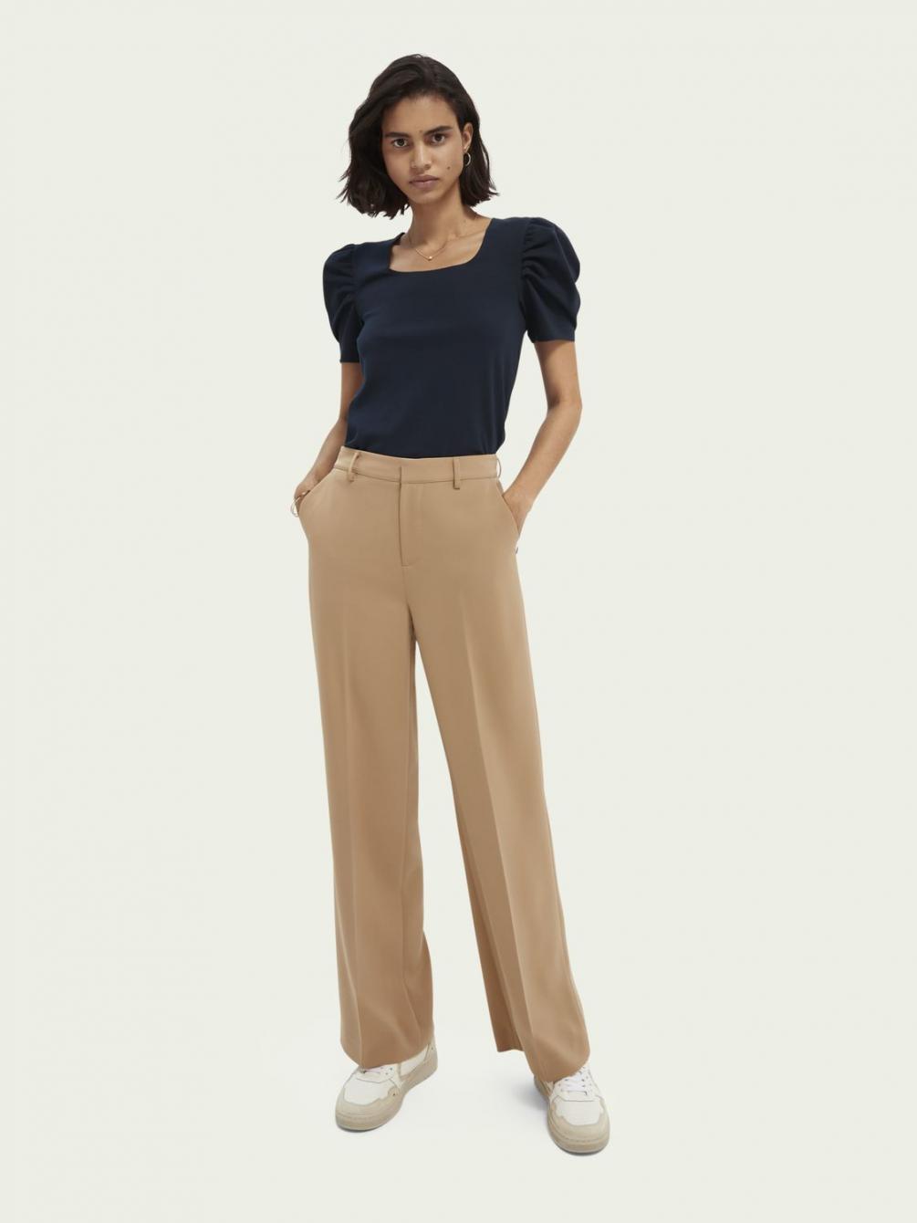 Onze populaire broek met wijde pijpen Edie is opgefrist met een subtiele camelkleur. Het wijde model geeft iedere outfit een elegante touch. Combineren met een wit T-shirt voor een casual look of pak het groots aan met een bijpassende blazer.