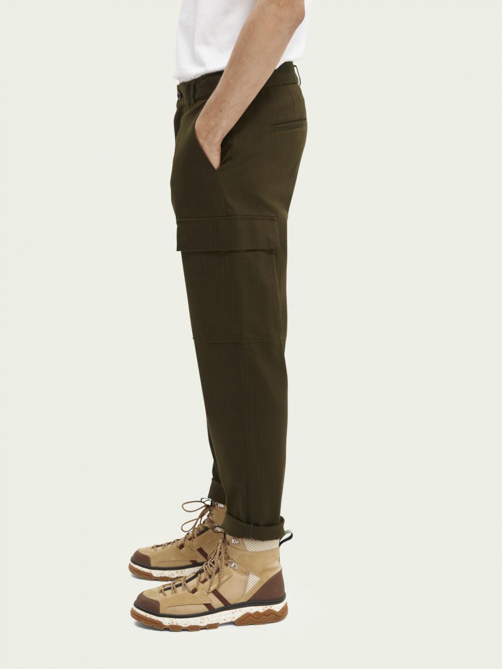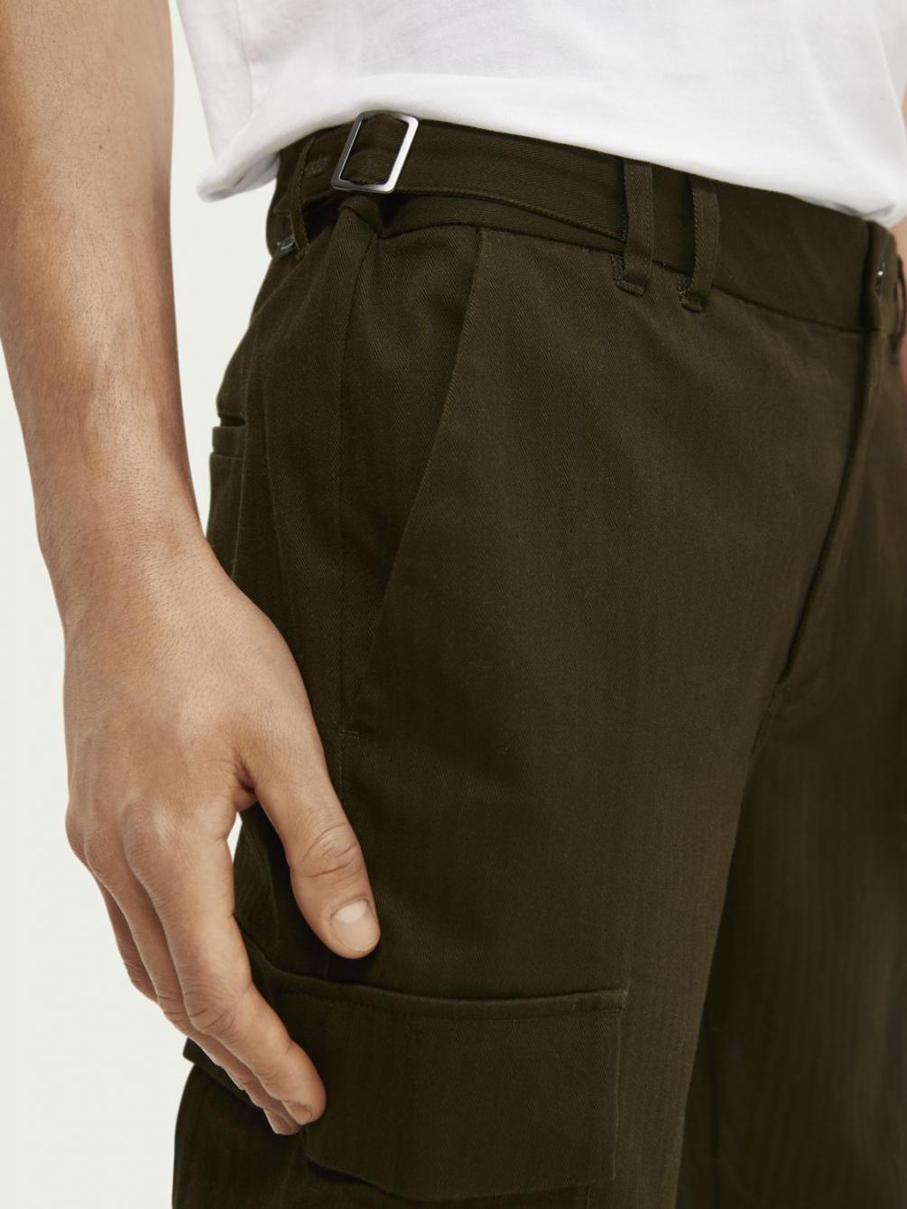 Deze klassieke cargobroek in een groene kleur is ontworpen met een visgraatdessin en utility-details. Gemaakt met biologisch katoen: niet genetisch gemodificeerde zaadjes worden gezaaid in grond die vrij is van pesticiden en kunstmest, met minder waterverbruik en geteeld met gebruik van gewasrotatie, wat beter is voor de gezondheid van de bodem.