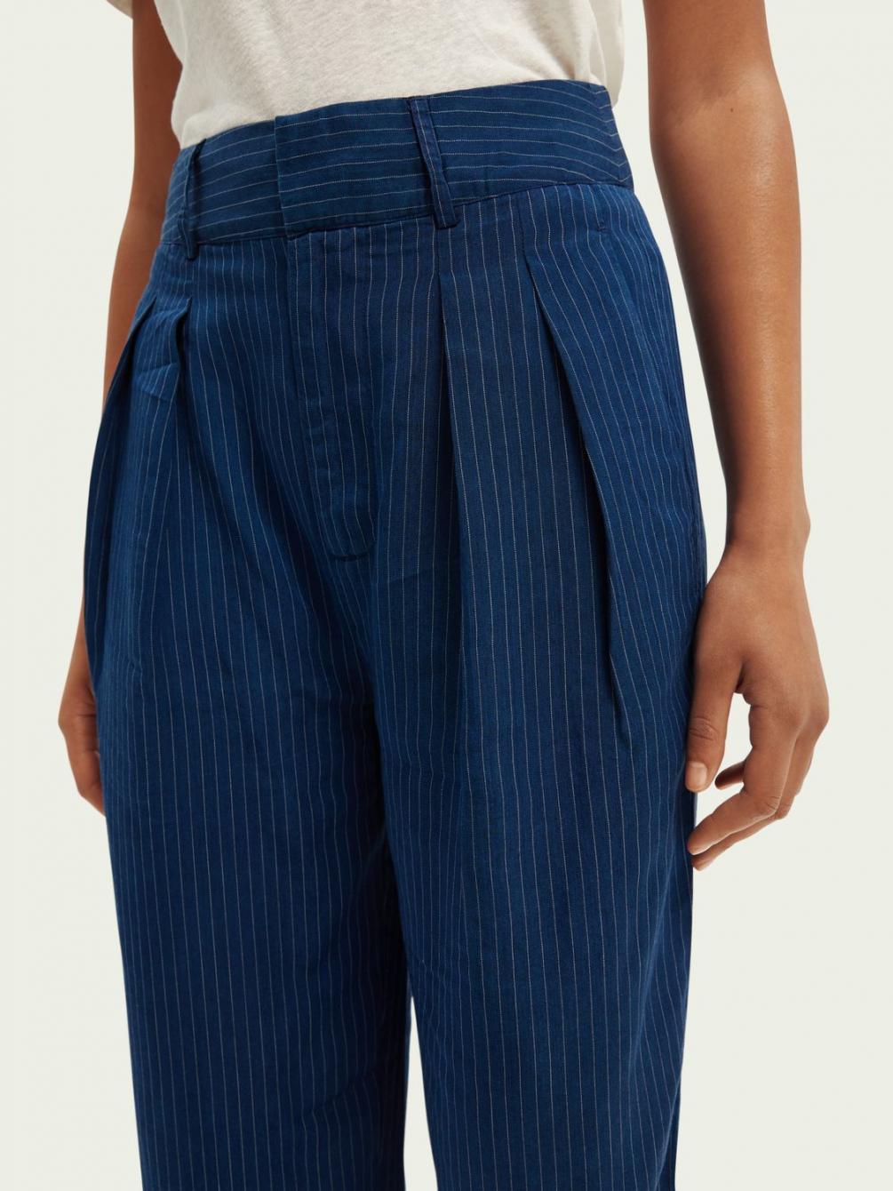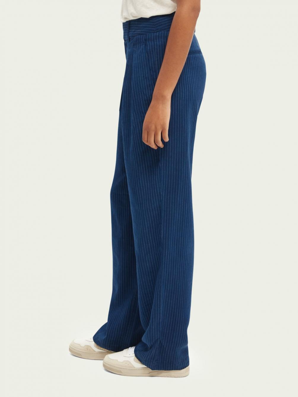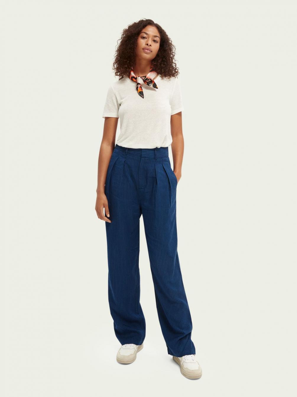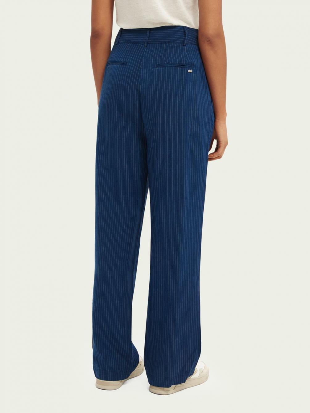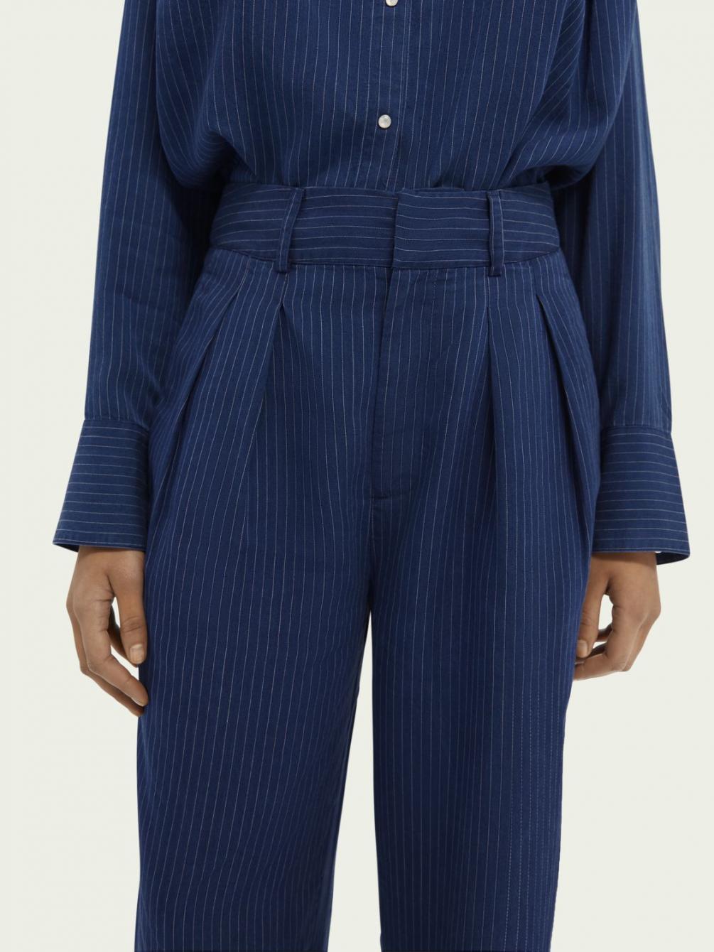 Deze AMS Blauw broek, gemaakt van TENCEL™ in een diepe indigotint, geeft iedere outfit een boost. De hoge taille en wijde pijpen maken hem ook nog eens super comfortabel. De subtiele plooien en het gestreepte dessin over beide pijpen ronden de look af. Draag deze broek met een frisse witte blouse voor een nette look.