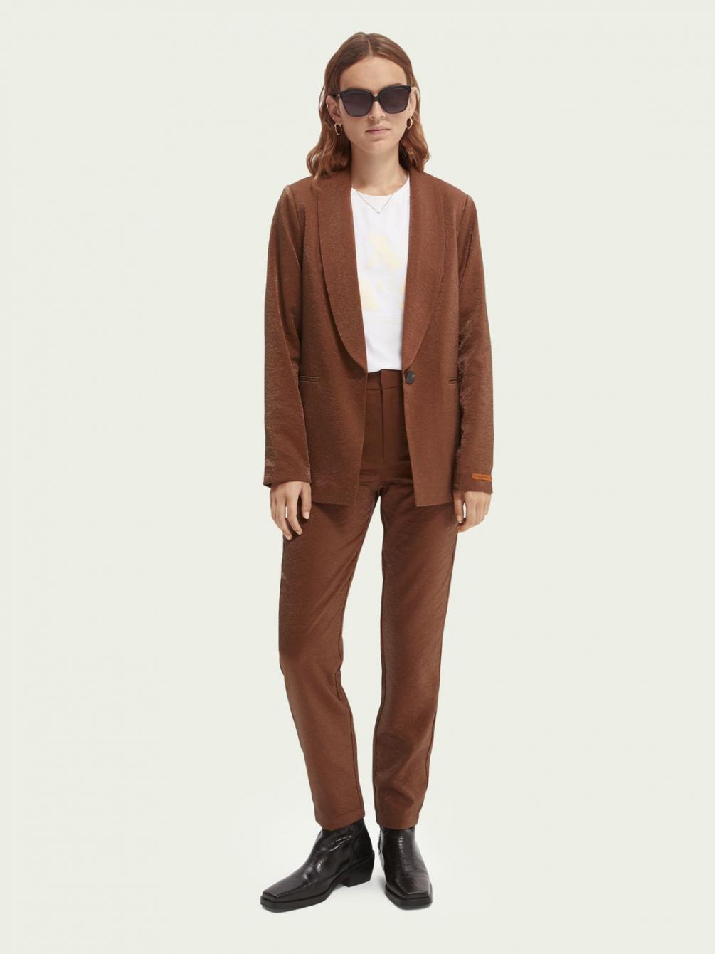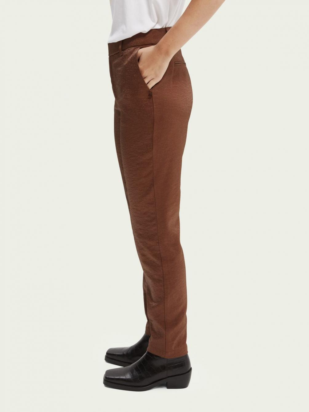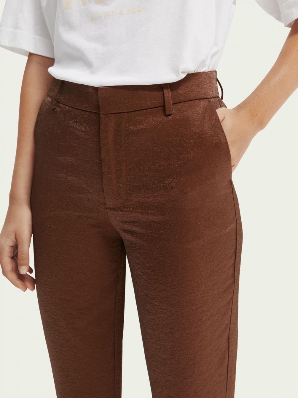 We hebben onze Lowry slim-fit broek een modern tintje gegeven in een metallic koperkleur. Combineer deze mid-rise stijl met een vrouwelijke blouse voor een nettere outfit of ga voor casual en stoer met een T-shirt.