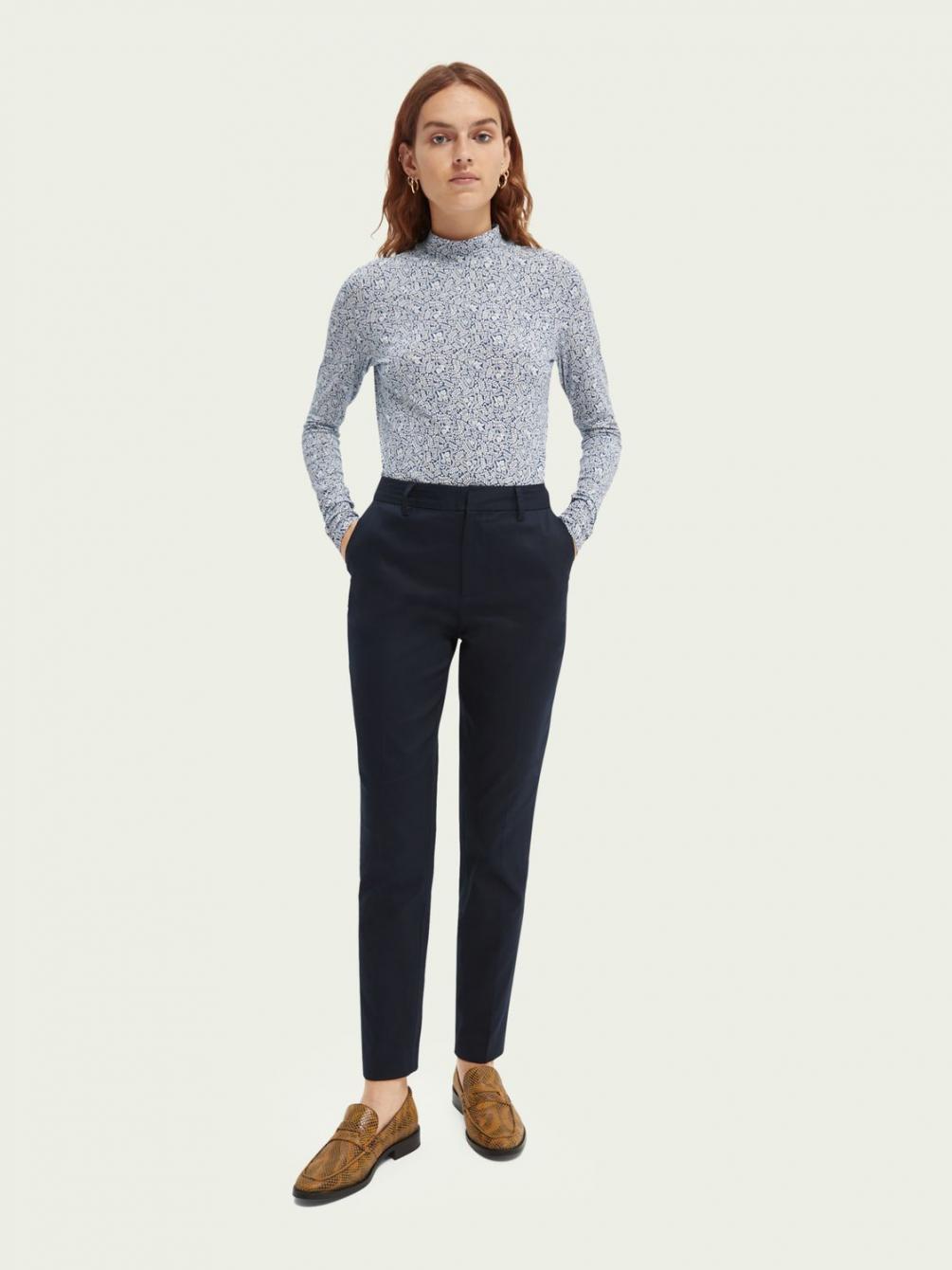 Broeken | Slim fit chino van gestructureerde twill Night – Scotch & Soda Dames