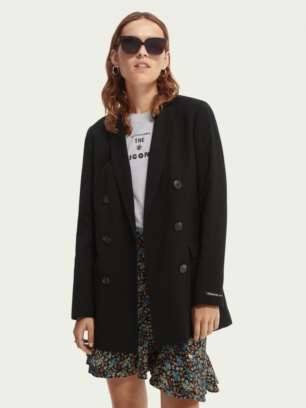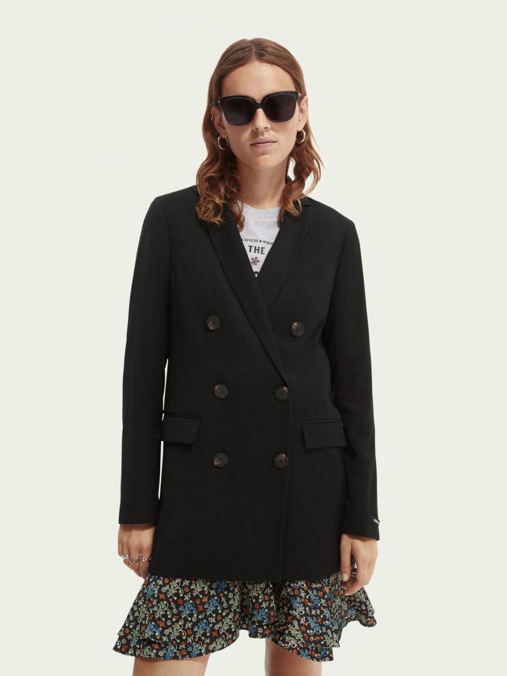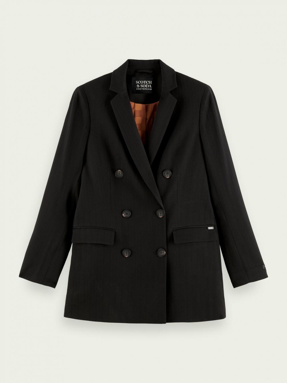 Onze perfect geproportioneerde double-breasted blazer is het ideale maatwerk item. De diepzwarte tint en contrasterende goudkleurige voering geven een geheel nieuwe dimensie aan het begrip luxueuze stijl.