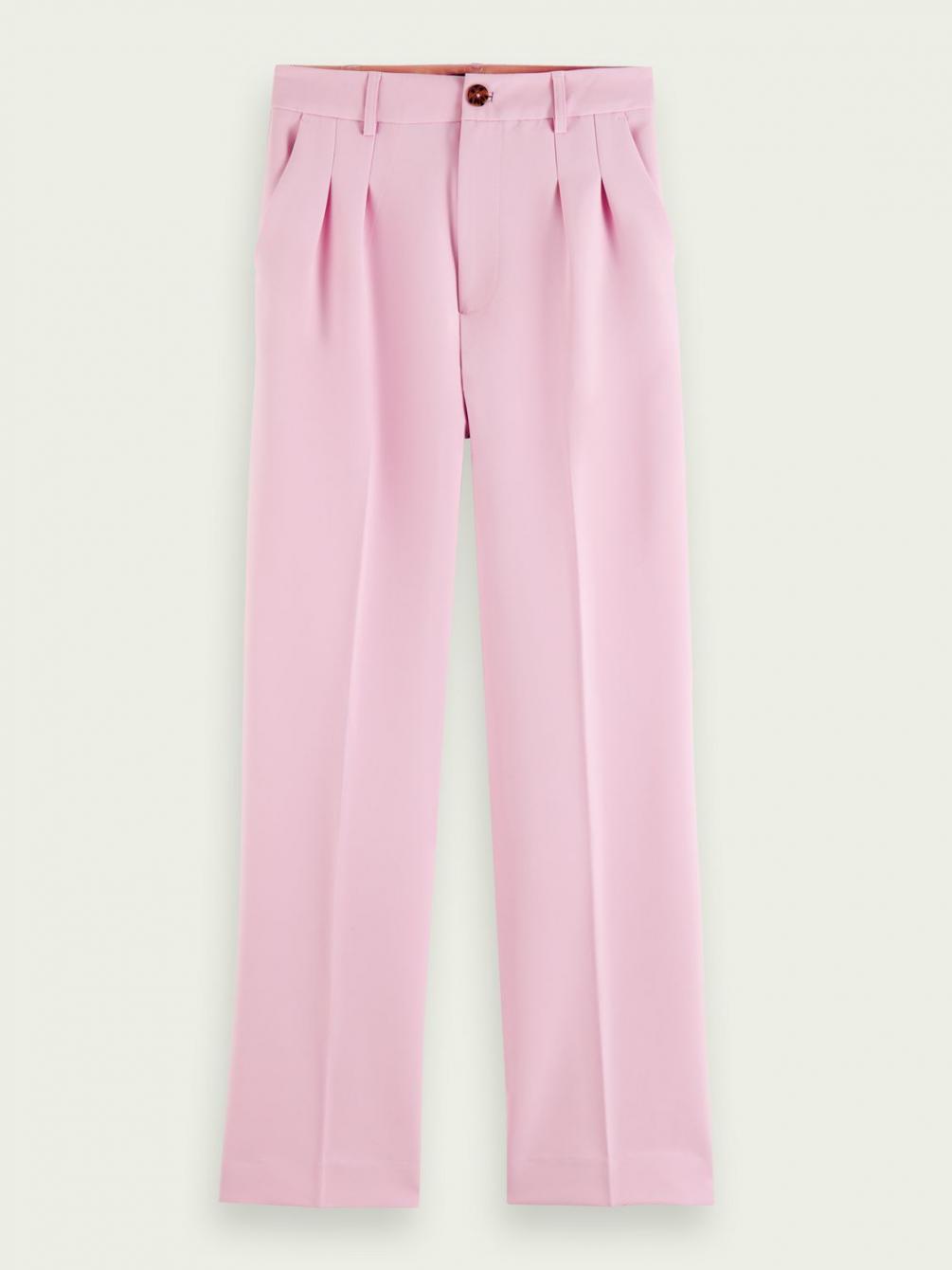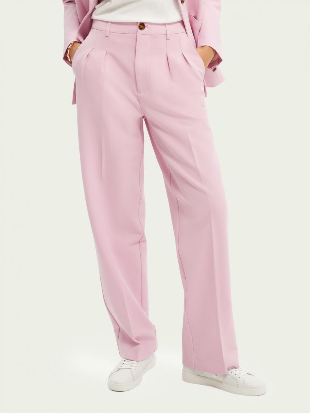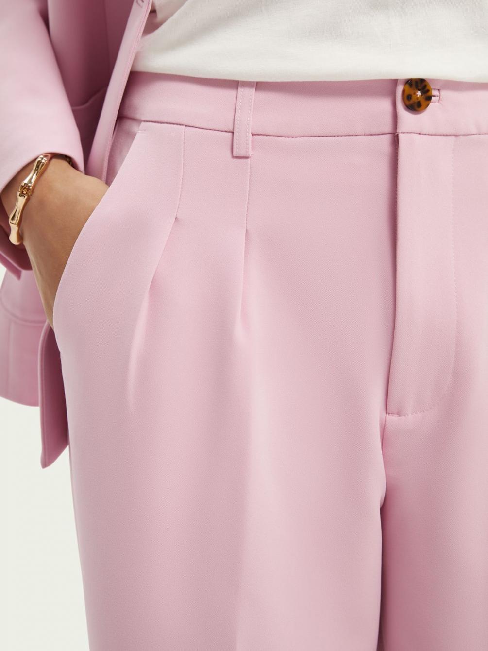 De high-rise pantalon van dit seizoen is het perfecte voorbeeld van een maatwerk item. De klassieke uitstraling van de plooien en knoopsluiting krijgt een moderne touch dankzij de zachtroze tint en iets langere pijpen. Klasse op een geheel nieuw niveau.