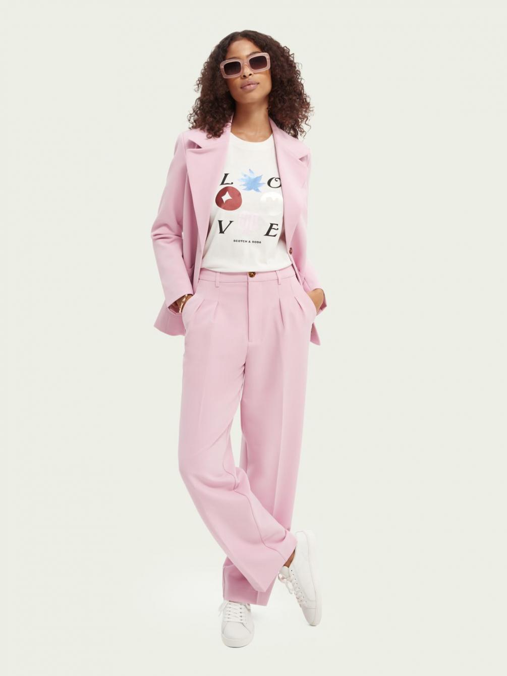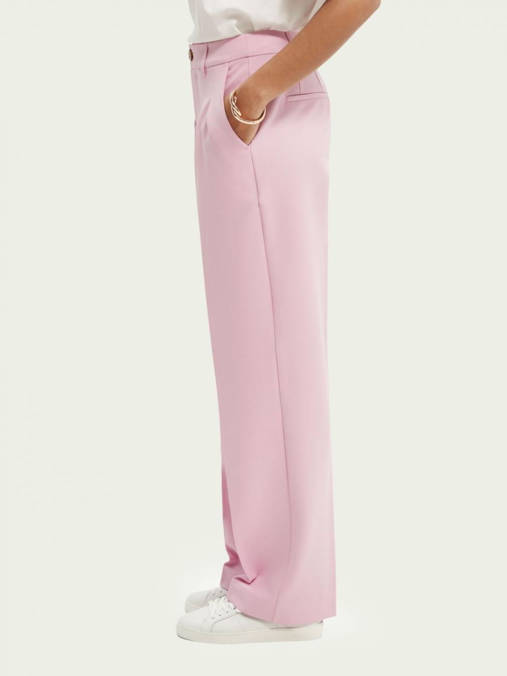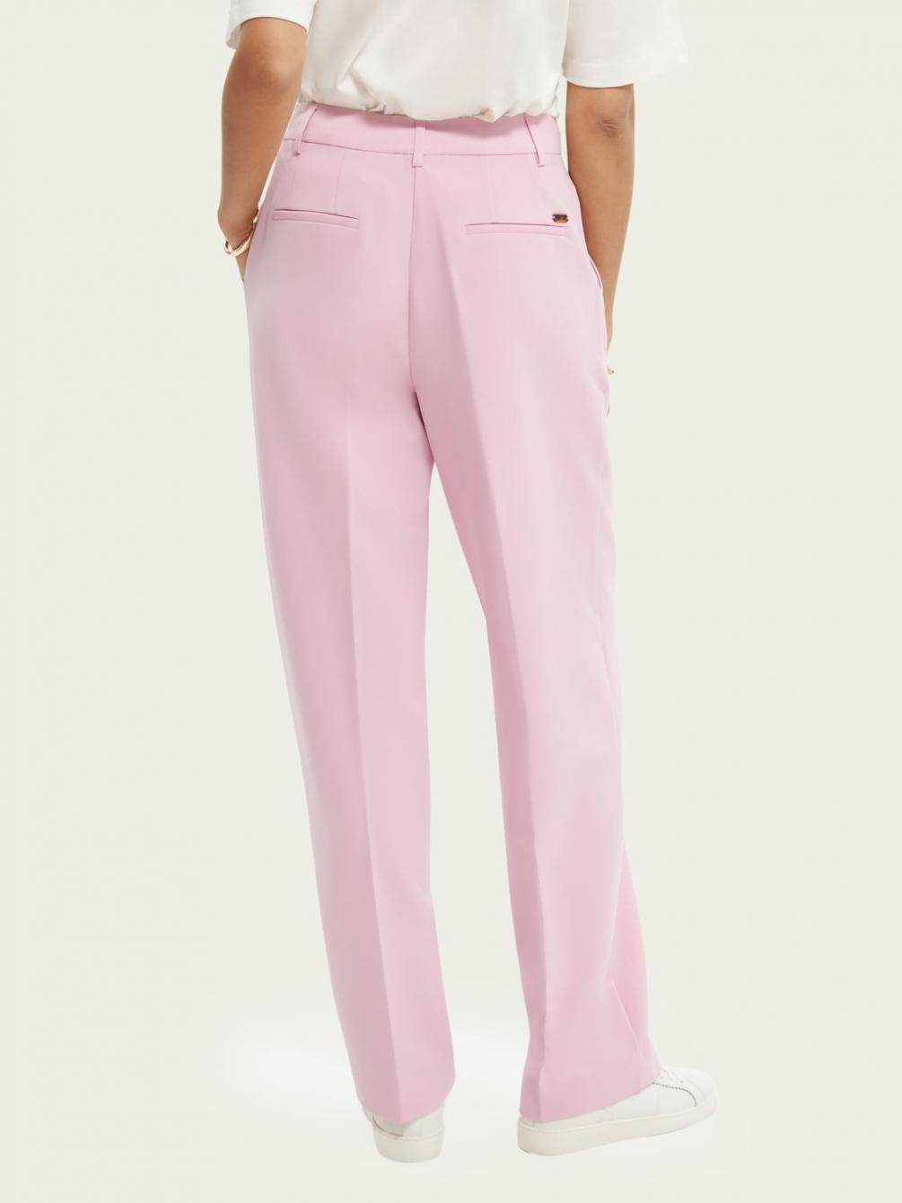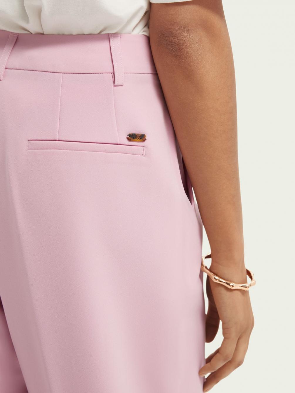 De high-rise pantalon van dit seizoen is het perfecte voorbeeld van een maatwerk item. De klassieke uitstraling van de plooien en knoopsluiting krijgt een moderne touch dankzij de zachtroze tint en iets langere pijpen. Klasse op een geheel nieuw niveau.