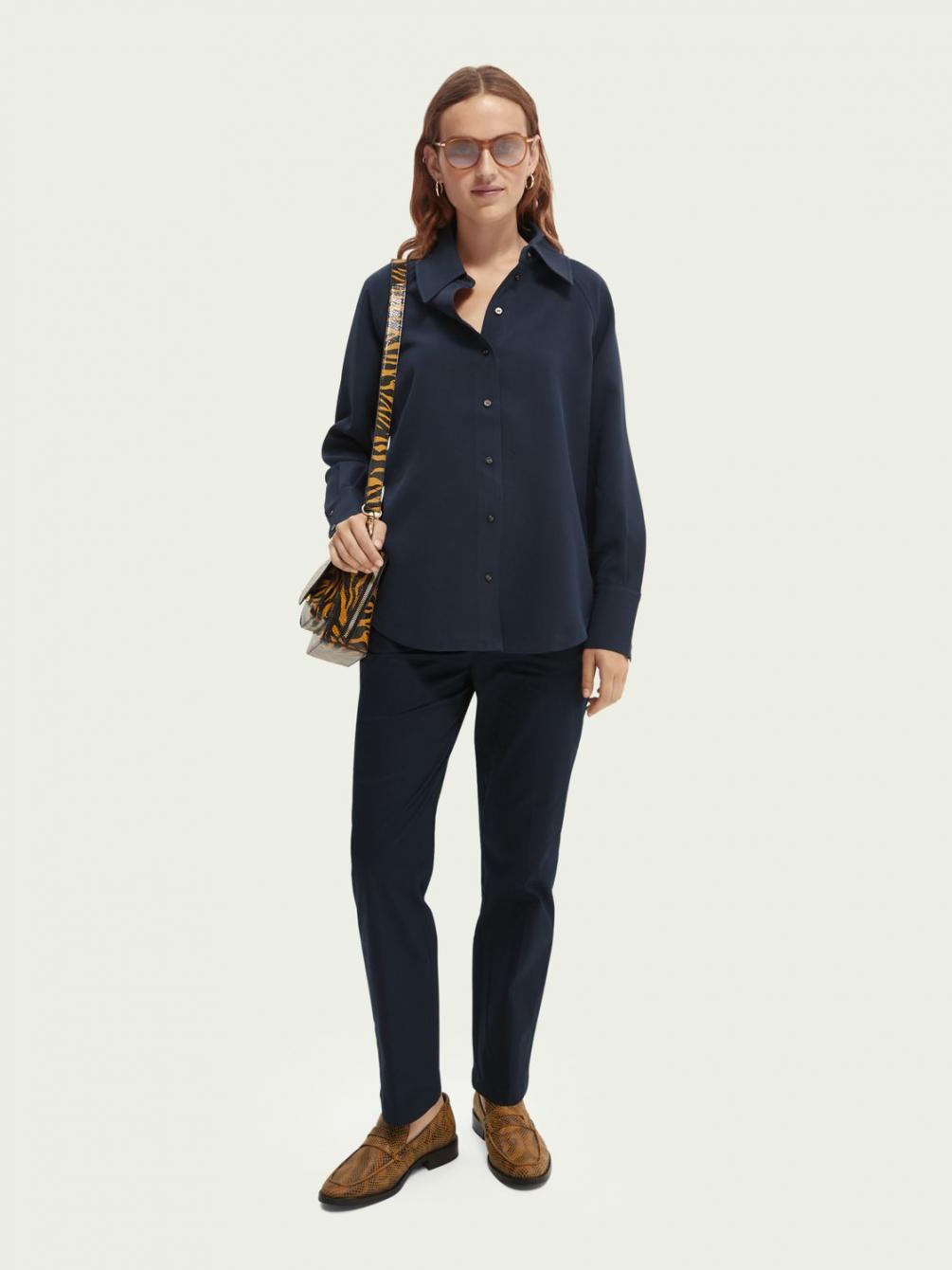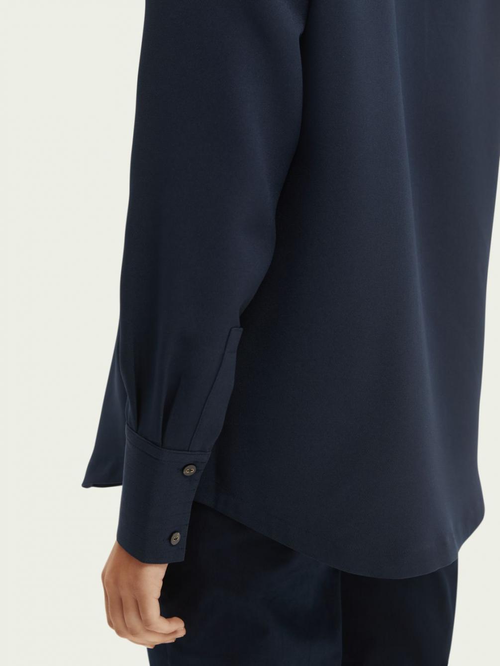 Een oversized fit, iets grotere kraag, elegante kleuren en een bijpassende knoopsluiting … ieder draadje van deze klassieke blouse maakt een verfijnde indruk.