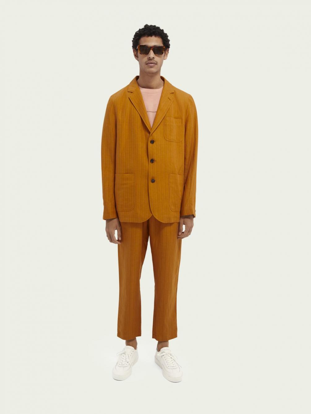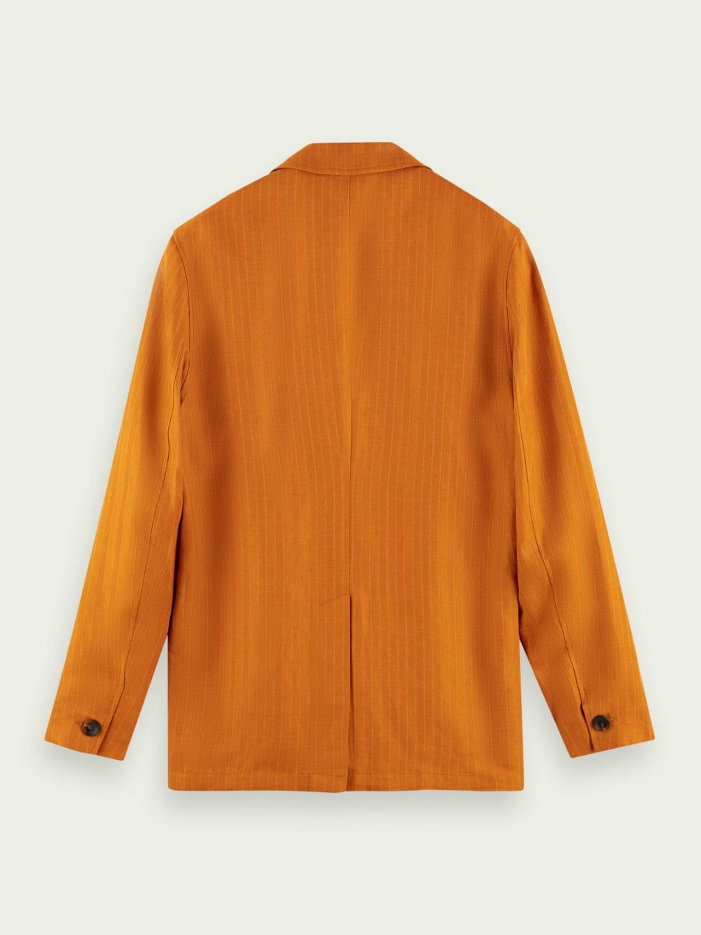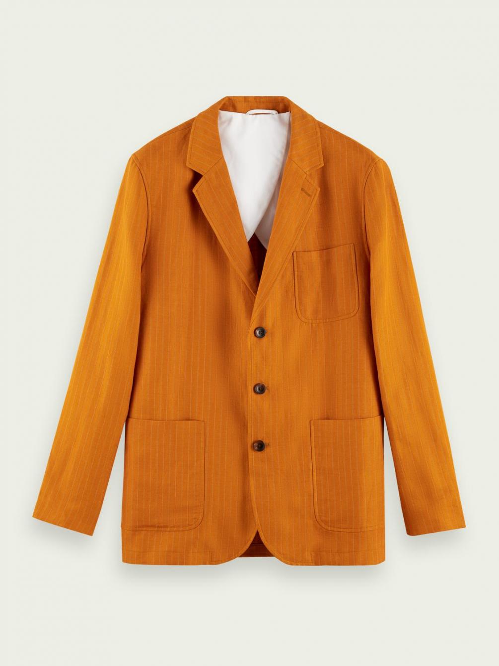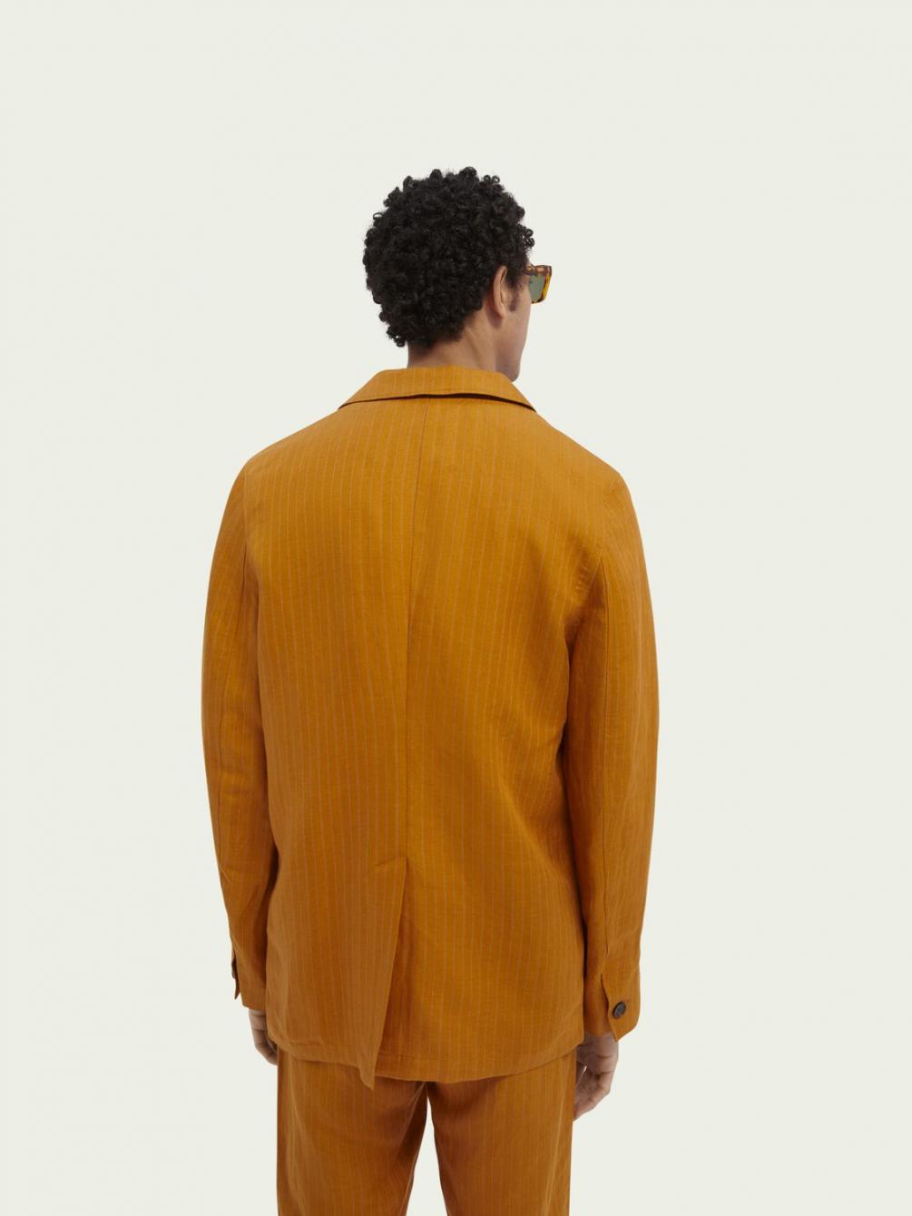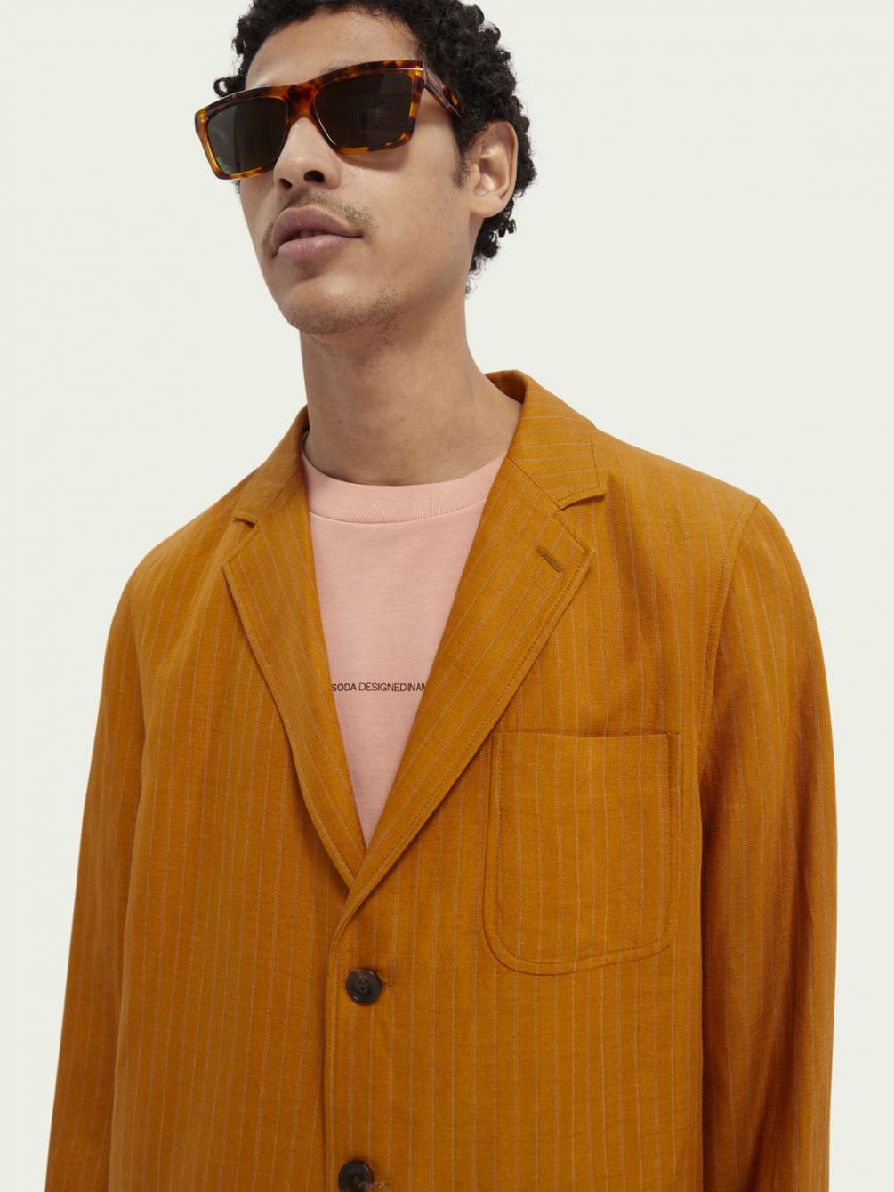 Deze blazer van een mix van linnen (54%) en ECOVERO™ (46%) is klaar voor iedere gelegenheid. De sluiting met drie knopen, de okergele tint en de subtiele verticale strepen geven deze look nog een extra boost voor een hoogwaardige finishing touch van je outfit.