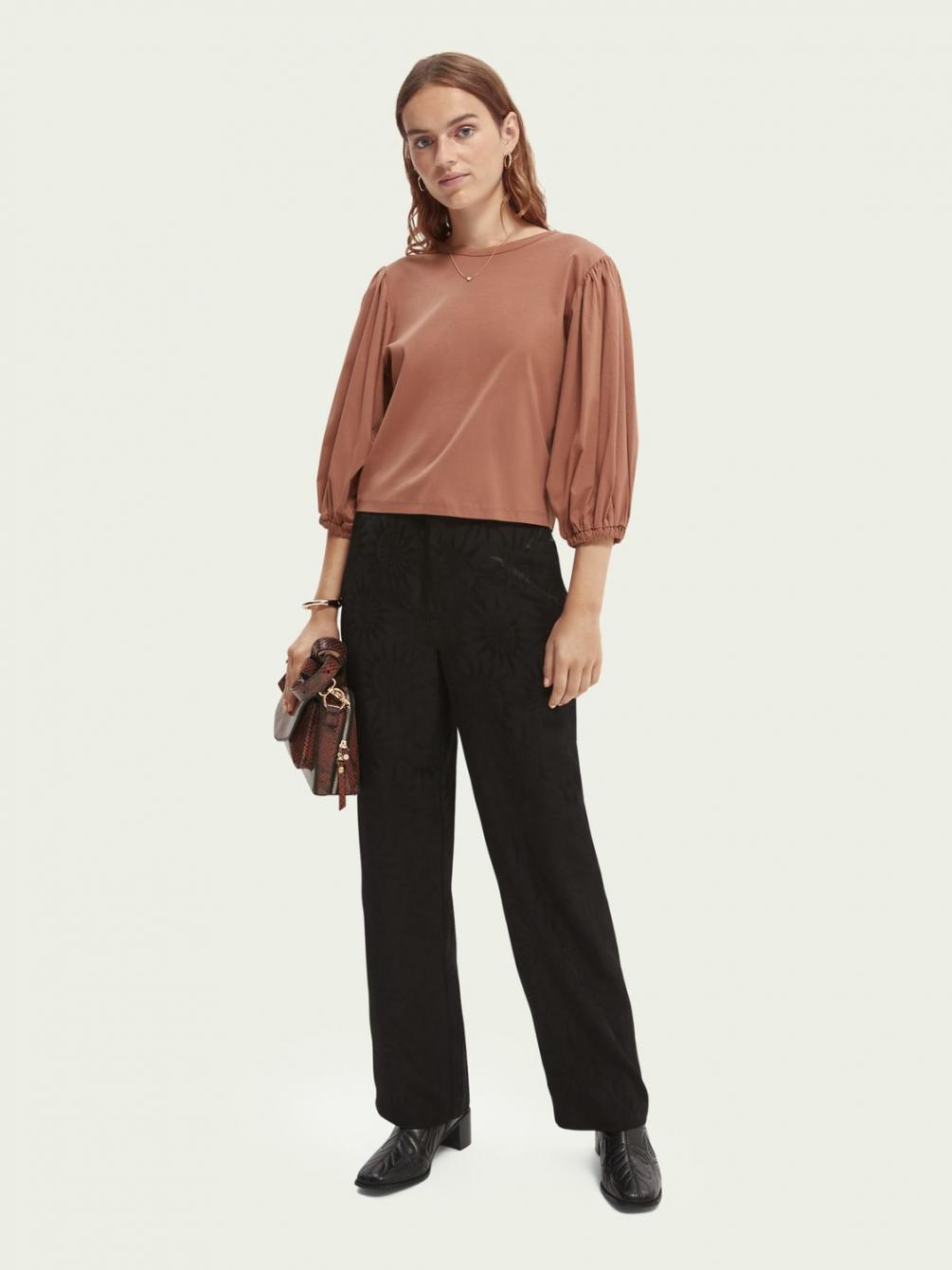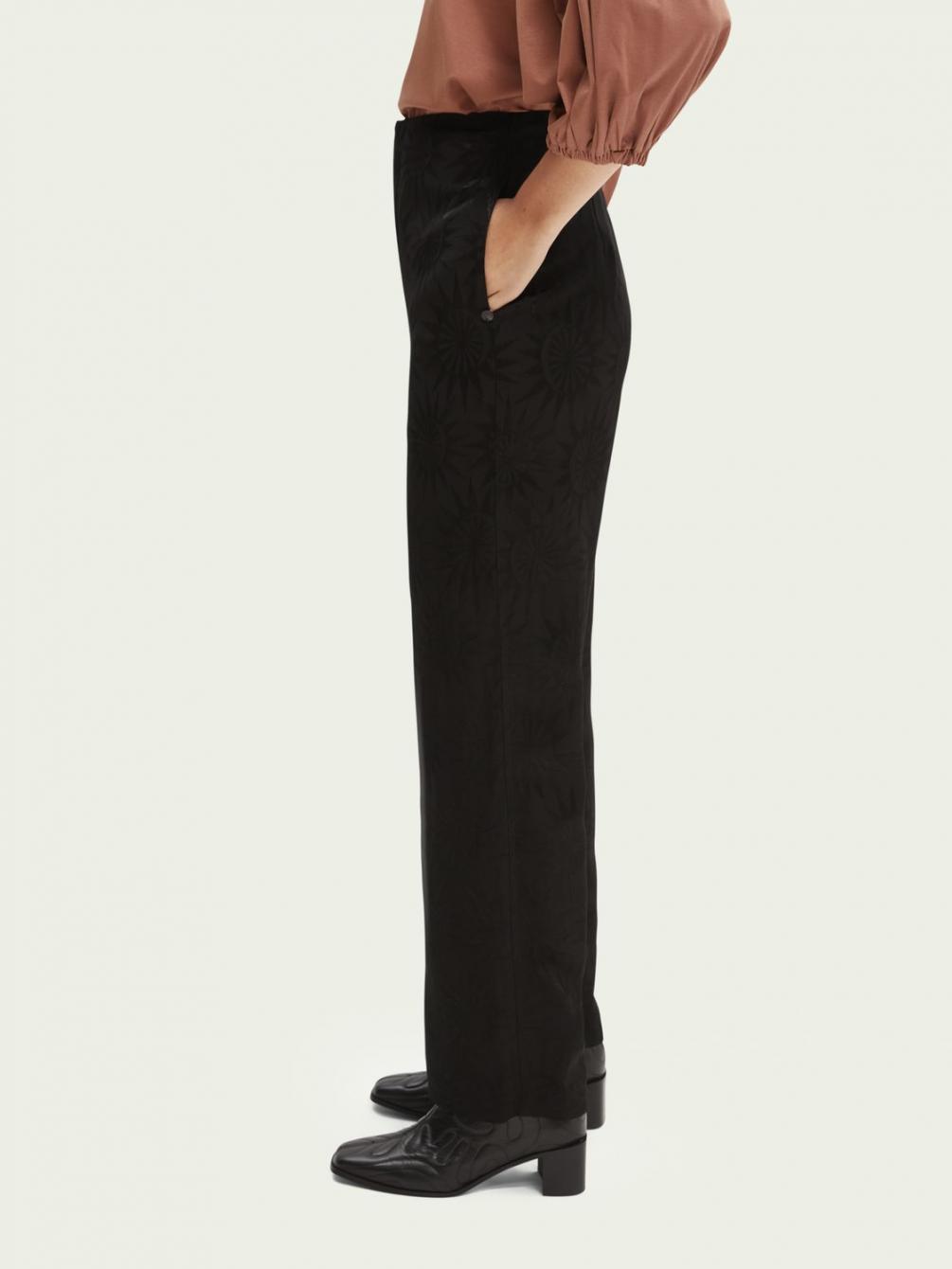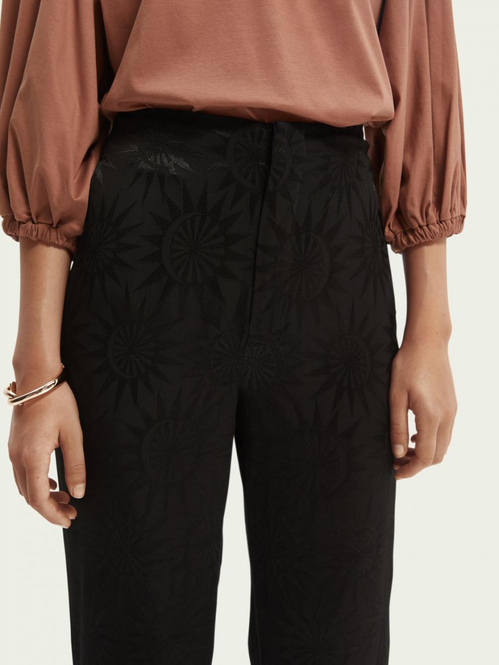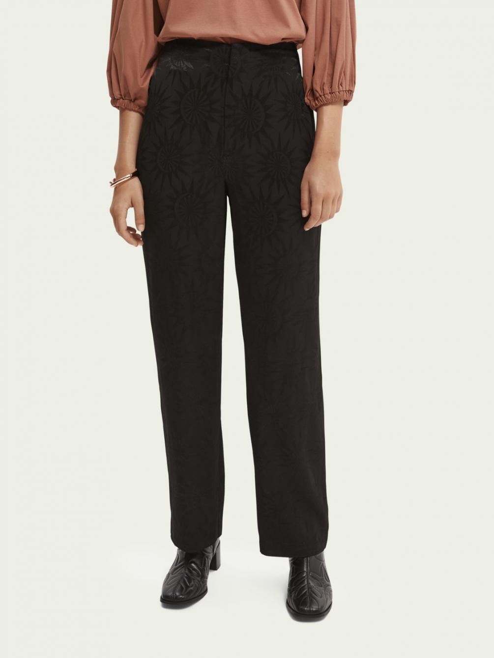 Combi sets | Tonal jacquard mid-rise broek met wijde pijpen Combo I – Scotch & Soda Dames