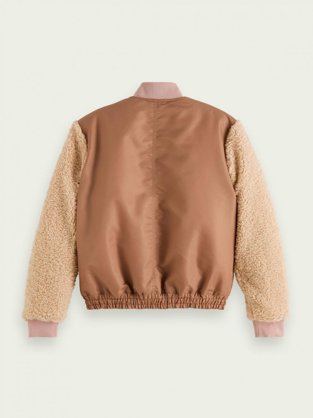 Een mix van zacht teddymateriaal en het stoere bomberdesign. Klinkt misschien een beetje vreemd, maar het werkt wel. Dit bomberjack met mouwen van teddy en een norma…