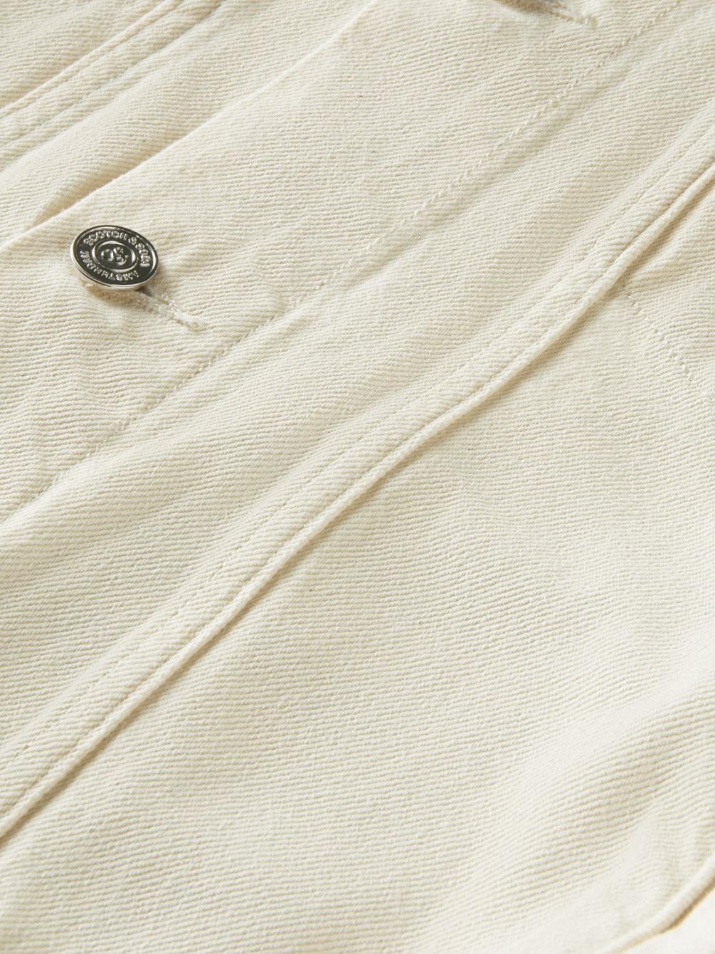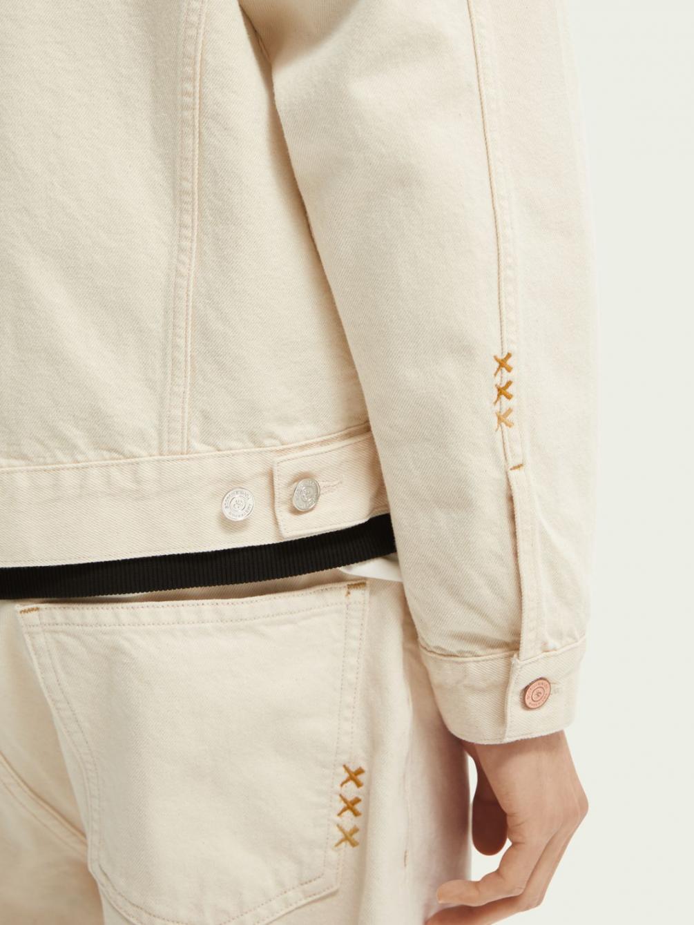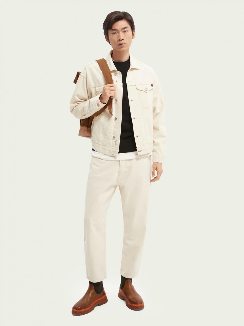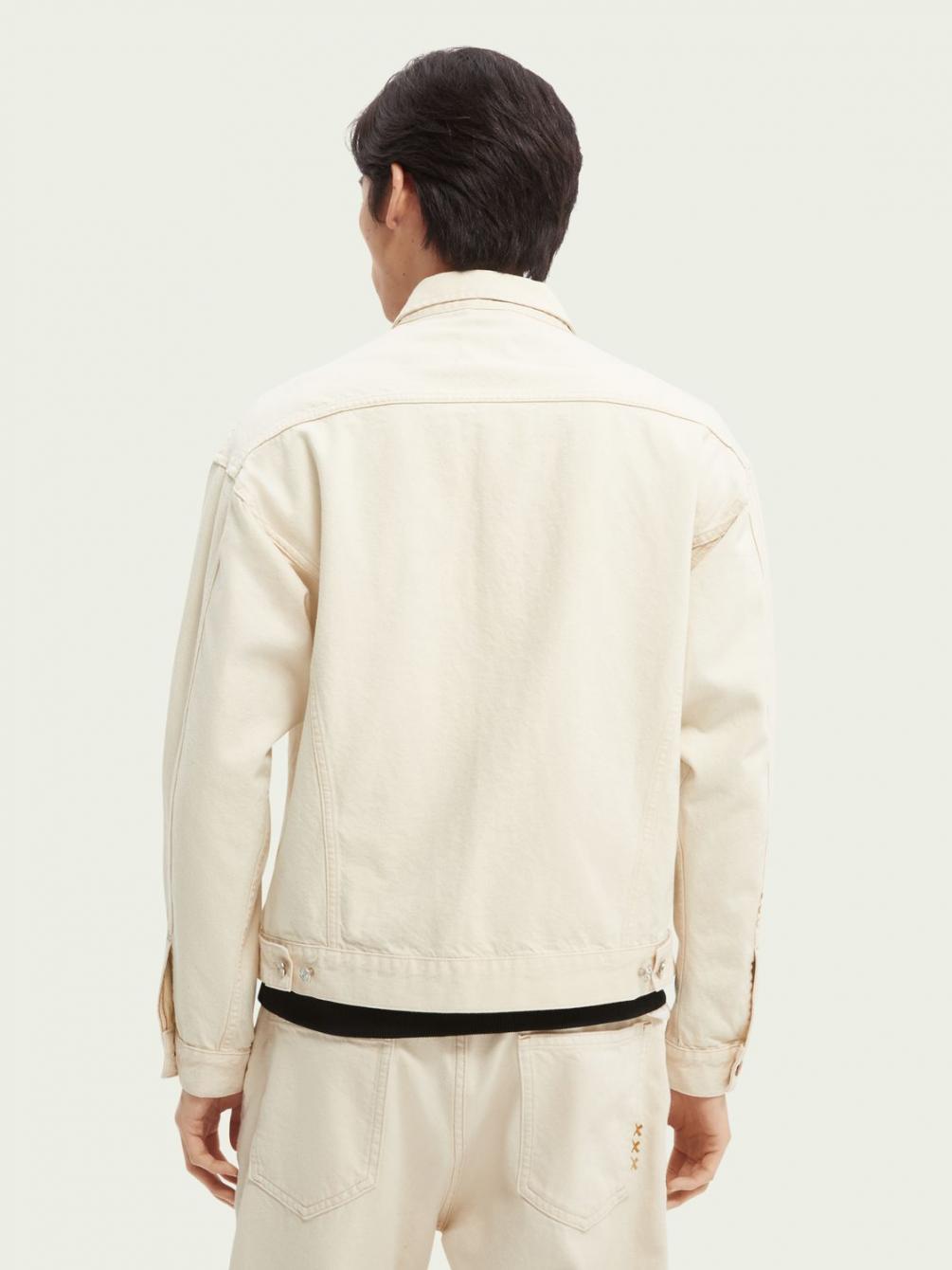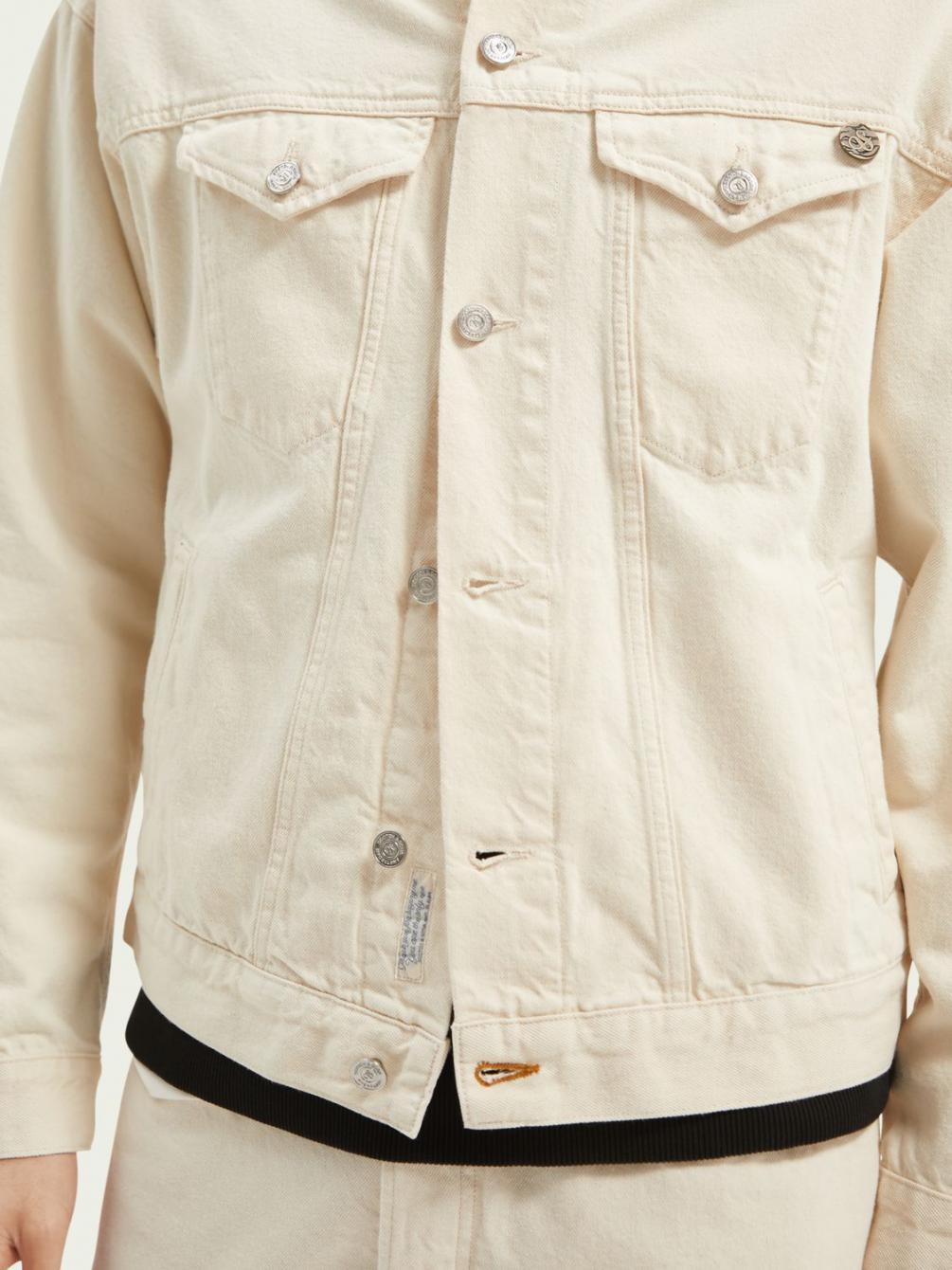 A classic denim jacket revamped in our signature Scotch & Soda colourway. This style has a button-down closure and features a structured design. Wear it open for a relaxed look.