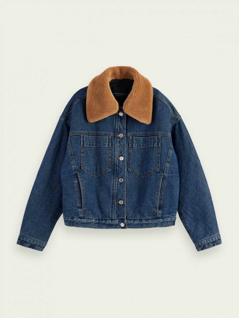 Jassen & jacks | Denim pilotenjack met teddy voering Indigo – Scotch & Soda Dames