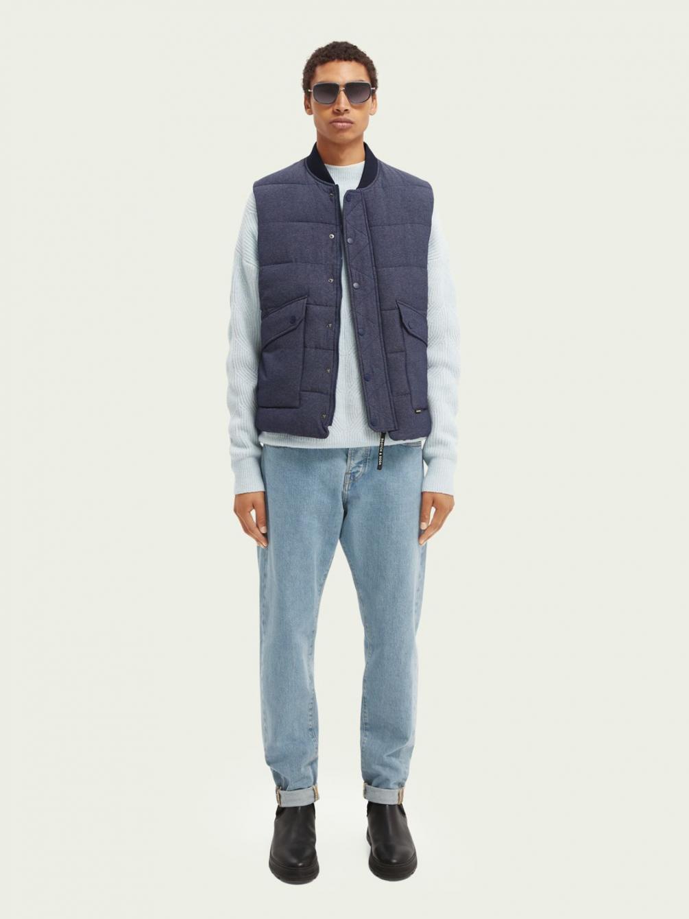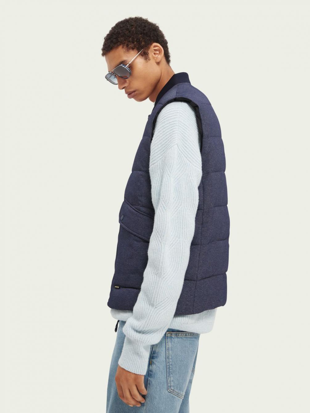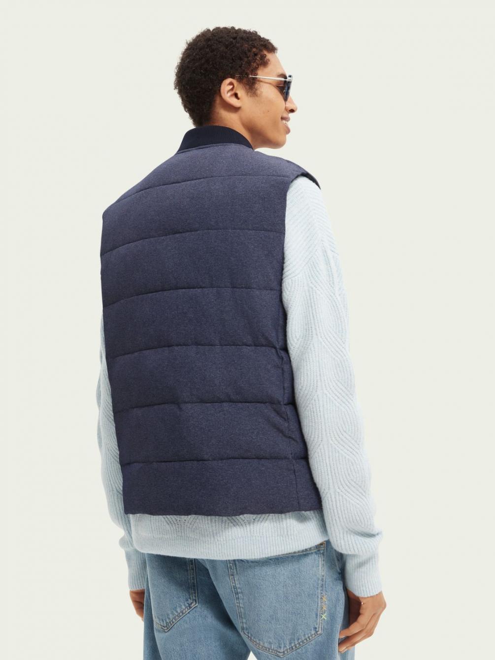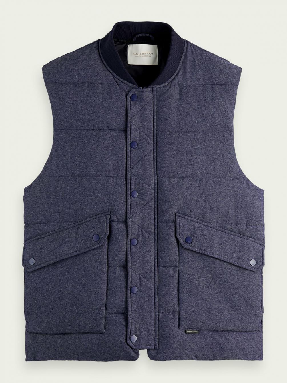 Jassen & jacks | Doorgestikte bodywarmer Denim Blue Melange – Scotch & Soda Heren
